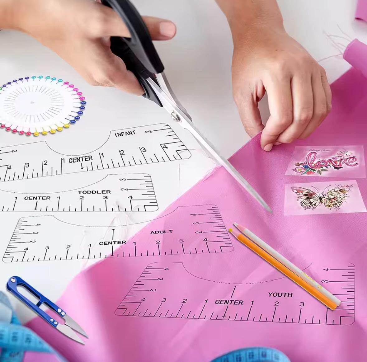 Hey DIY-Fans! Dieses geniale 4-in-1 T-Shirt Lineal macht endlich Schluss mit schiefen Aufdrucken! Aus transparentem Acryl kannst du perfekt durchgucken und dein Vinyl-Motiv genau zentrieren. Mit 17x7 cm passt es für alle Erwachsenengrößen von S bis XXL. Das Beste: Es ist beidseitig bedruckt - für helle und dunkle T-Shirts gleichermaßen geeignet. Super praktisch für Heißpressen, Sublimation oder einfach als Nählineal. Nie wieder raten, wo das Motiv hinsoll! Spart dir Zeit und Nerven bei jedem Projekt. Einfach an den Kragen anlegen, Motiv positionieren, mit Wärmeband fixieren und schon passt alles. Ein absolutes Must-Have für alle, die gerne mit Textilien arbeiten!
