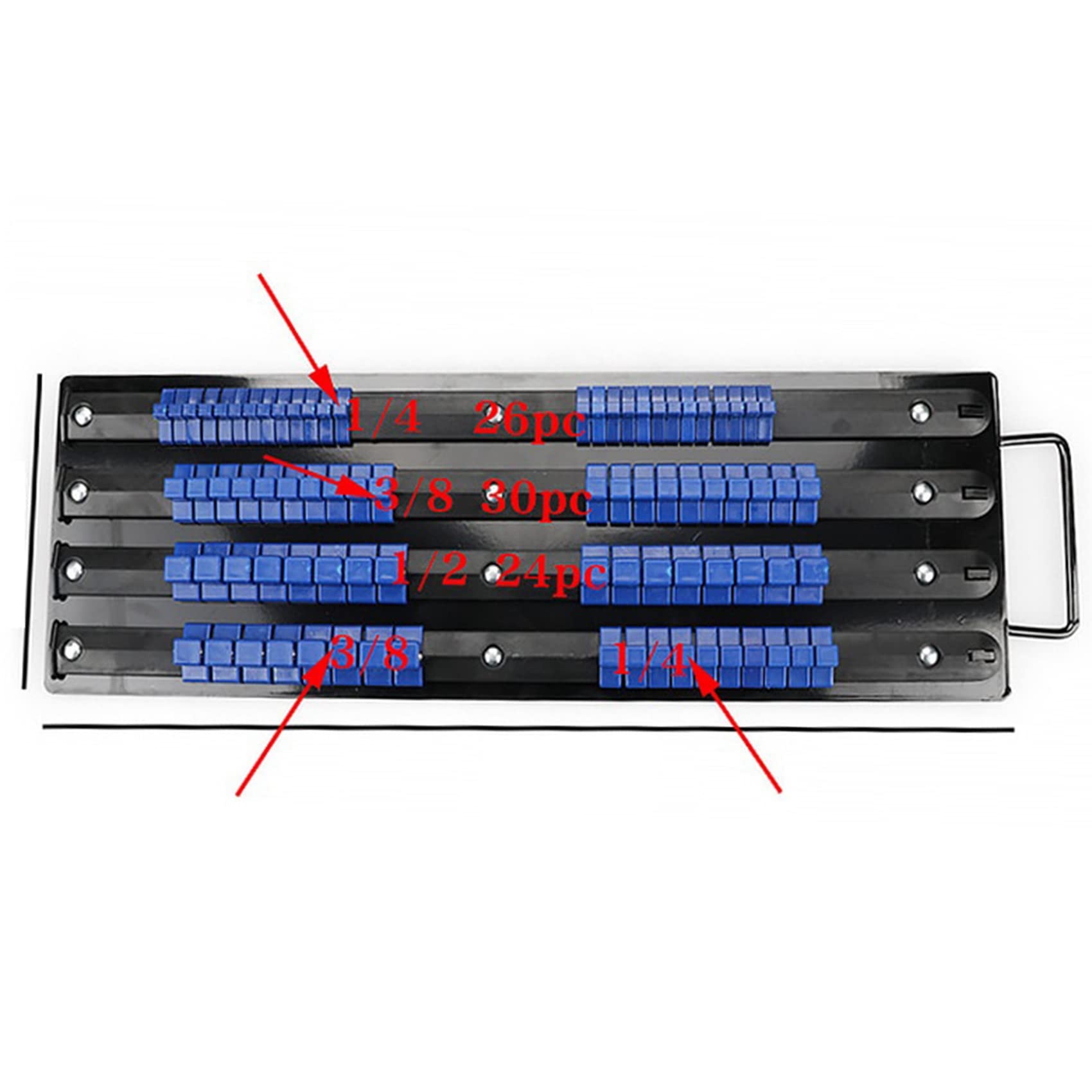 Endlich Ordnung im Werkzeugkasten! Dieser Chiloskit Steckschlüssel-Organizer bringt System in deine Stecknüsse - und das für alle gängigen Antriebsgrößen. Mit 80 Clips hast du Platz für 20x 1/4 Zoll, 30x 3/8 Zoll und 30x 1/2 Zoll Stecknüsse. Die vernickelten Stahl-Clips halten bombenfest, lassen sich aber trotzdem leicht entnehmen. Ob in der Schublade, an der Wand oder auf der Werkbank - der Organizer mit seiner 41,2 x 15,5 cm Basis ist super vielseitig. Der integrierte Tragegriff ist perfekt, wenn du dein Werkzeug mal woanders brauchst. Und das Beste: Die federbelasteten Kugellager sorgen für sicheren Halt, egal ob bei flachen oder tiefen Stecknüssen. Kompatibel mit allen Marken wie Snap-On, Craftsman, Mac - einfach universell einsetzbar. Mach Schluss mit dem Chaos und hol dir diesen praktischen Helfer für deine Werkstatt!