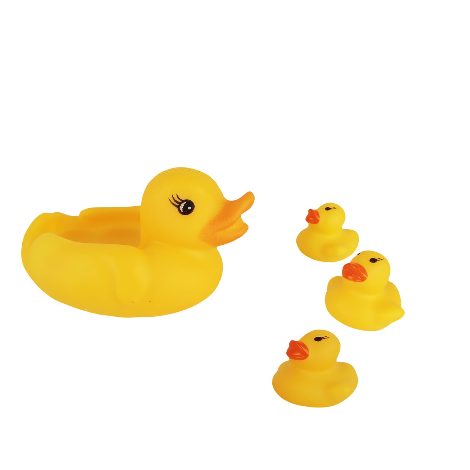 Planschvergnügen garantiert! Diese süße Entenfamilie bringt Spaß in jede Badewanne und jeden Pool. Das Set besteht aus 1 Mama-Ente und 3 Baby-Enten - alle aus sicherem ABS-Material. Die großen sind etwa 10.5x9x8.5cm groß, perfekt für kleine Kinderhände. Das Besondere: Jede Ente quietscht wenn man draufdrückt! Das fördert die motorische Entwicklung und macht einfach Laune. Die Enten sind super robust - werfen, quetschen, planschen - sie halten alles aus und bleiben weich. Leicht und handlich, ideal für unterwegs: Einfach in die Tasche stecken und schon hast du überall Spielspaß dabei. Ob im heimischen Badezimmer, im Plantschbecken im Garten oder am Strand - die Entenfamilie ist immer dabei. Kinder lieben es, mit den Enten zu spielen, sie zu waschen oder damit zu planschen. Und das gemeinsame Spielen fördert soziale Fähigkeiten. Einfach perfekt für kleine Wasserratten!
