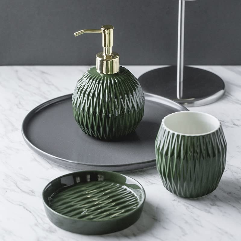 • 4-teiliges Set: WC-Garnitur, Seifenspender, Seifenschale, Zahnputzbecher