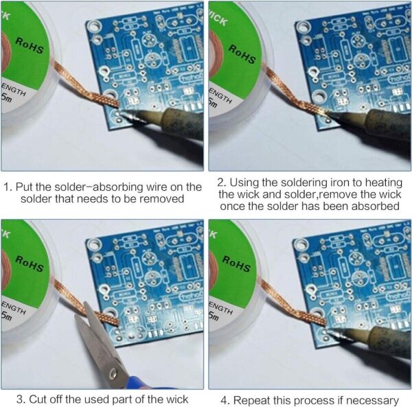 Professionelles Entlöten war noch nie so einfach! Dieses 4-teilige Set enthält Entlötlitze in 4 verschiedenen Stärken: 2.0mm, 2.5mm, 3.0mm und 3.5mm - jeweils 3 Meter lang. Aus 100% reinem Kupfer mit feiner Flechtstruktur für optimale Wärmeleitung und Lötmittelaufnahme. Schont Leiterplatten und Bauteile beim Entfernen von Lötzinn. Ideal für Elektronik-Reparaturen, Hobby-Bastler oder professionelle Anwendungen. Einfach zu handhaben - perfekt für kleine Lötstellen und feine Arbeiten. Rückstandsfrei und zuverlässig. Ob in Werkstatt, Schule oder daheim - dieses Set macht jedes Entlöt-Projekt zum Kinderspiel! Unverzichtbar für jeden, der mit Elektronik zu tun hat!
