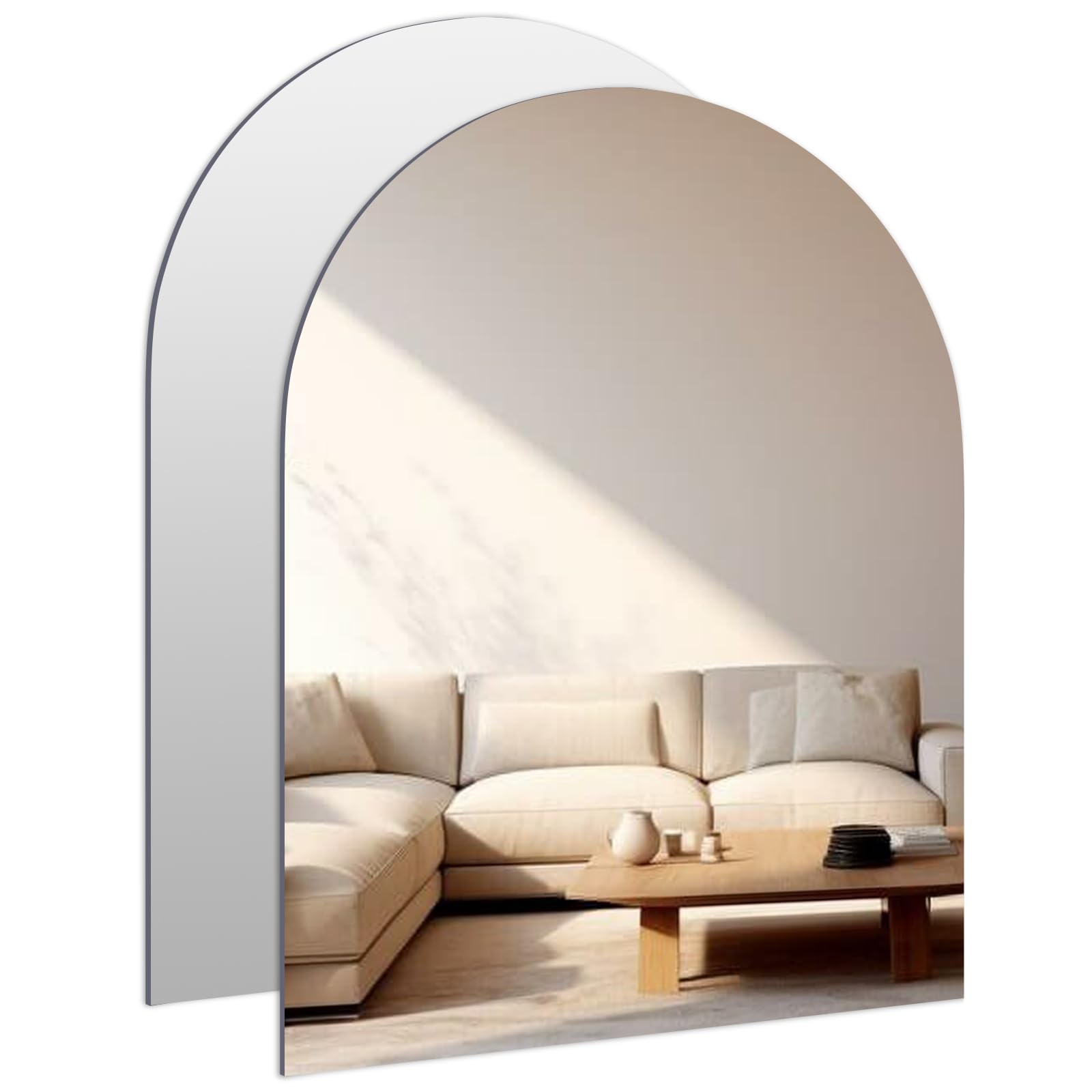 • ROYUEXT Bogenspiegel Selbstklebend 40×30cm - Rahmenloser Wandspiegel Für Bad & Wohnzimmer