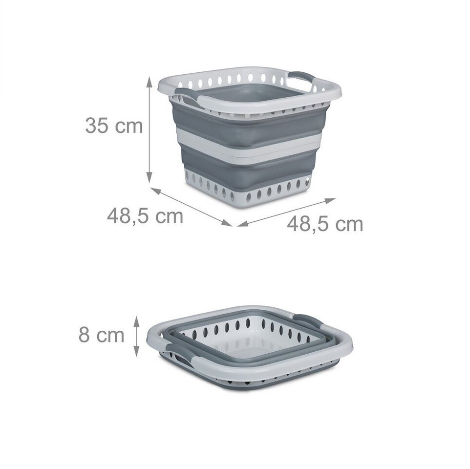 Der platzsparende Alleskönner für deine Wäsche! Dieser faltbare Wäschekorb von Relaxdays ist super praktisch: 40 Liter Fassungsvermögen, stabile Griffe zum Tragen und ein Abflussloch, das ihn sogar zur Waschschüssel macht. Nach Gebrauch einfach zusammenklappen - dann ist er nur noch 8cm hoch und passt unter jedes Bett oder in die kleinste Ecke. Maße: 35x48,5x48,5cm (HxBxT). Aus robustem Kunststoff (PP/TPR) in modernem Grau/Blau. Perfekt für den Wäschetansport zwischen Waschmaschine und Wäscheständer, aber auch ideal für Camping oder als praktische Aufbewahrung. Deutsche Qualität von Relaxdays - einfach clever!
