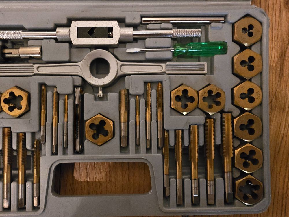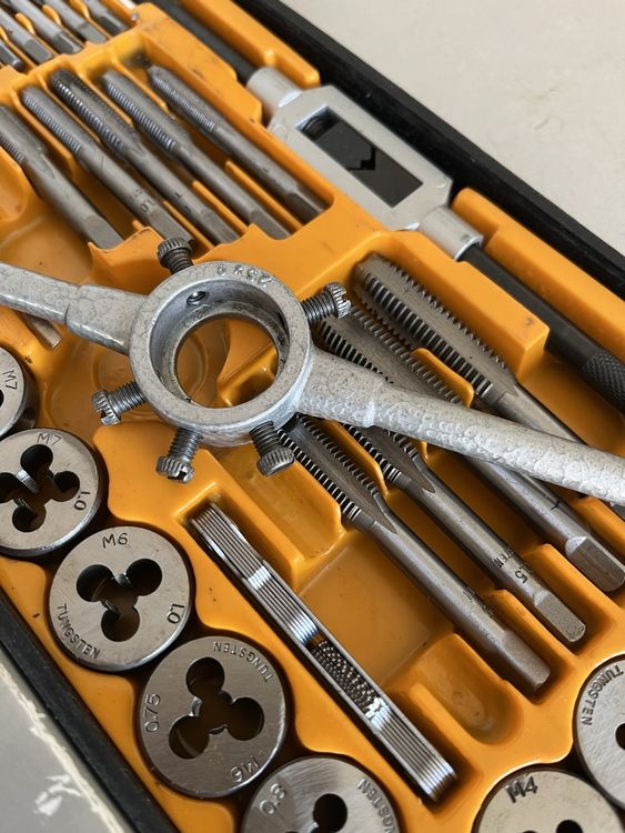 Professionelles Gewindeschneiden leicht gemacht! Dieses Aceteel Set mit 11/64-40 UN Gewindebohrer und passendem Schneideisen ist perfekt für Metallarbeiten. Aus hochwertigem HSS-Material für lange Haltbarkeit. Für Rechtsgewinde in Metallen wie Stahl, Kupfer, Aluminium und mehr. Einfach zu verwenden mit Handwerkzeugen oder Maschinen. Vergiss nicht Schneidöl zu verwenden für beste Ergebnisse und längere Lebensdauer. Ob in der Werkstatt oder daheim - damit schneidest du präzise Gewinde wie ein Profi. Komplett-Set für alle Gewinde-Projekte!