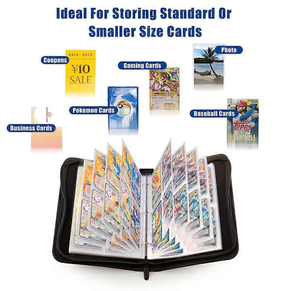 Das Album ist aus hochwertigem PU-Leder gefertigt und komplett wasserabweisend. Der stabile Reißverschluss hält alles sicher verschlossen, und der praktische Tragegriff macht es zum perfekten Begleiter für Treffen mit anderen Sammlern. Das 3-Ring-Metallsystem ermöglicht dir, Seiten einfach zu tauschen oder zu ergänzen.