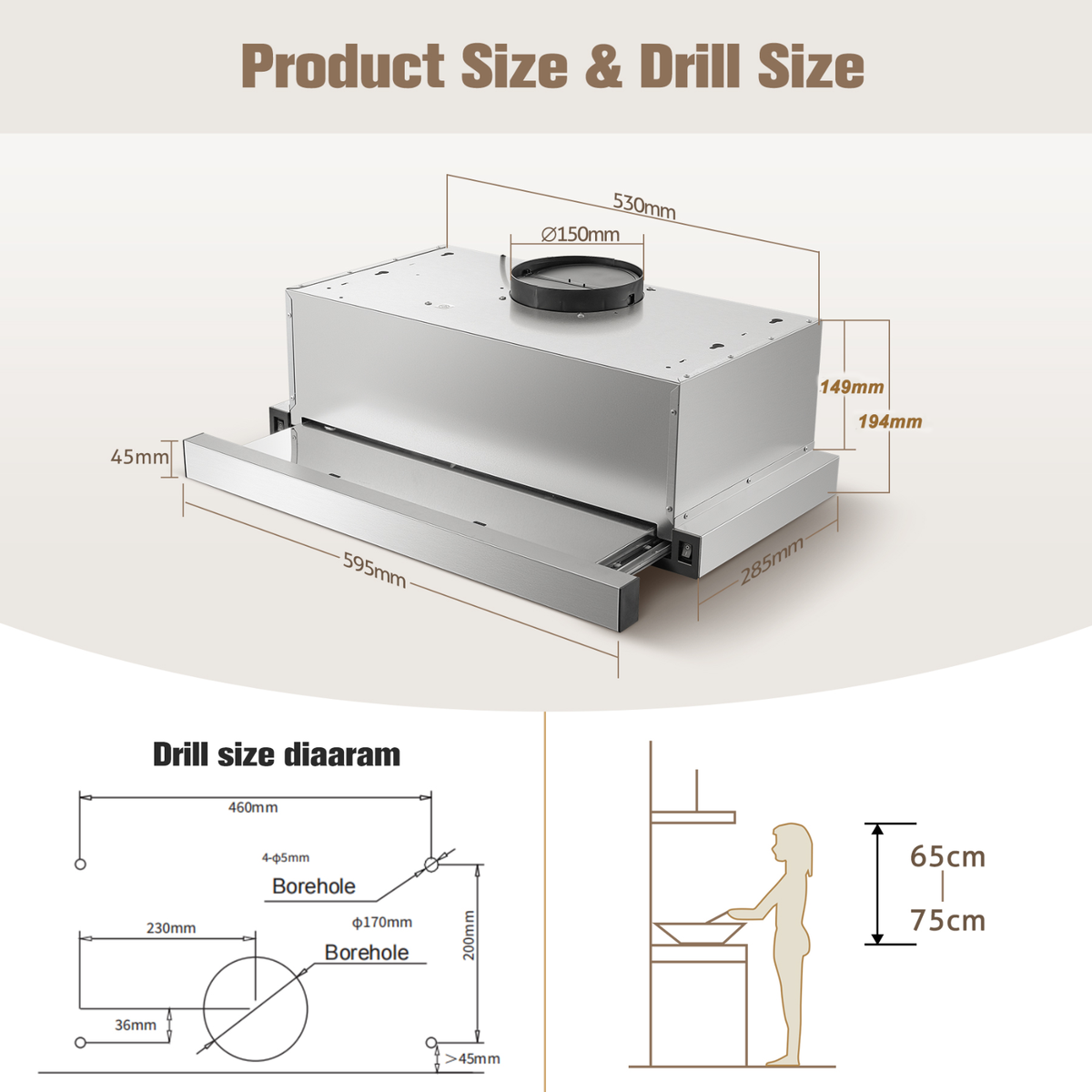 • KICHPOWER Flachschirmhaube 60cm A+++ - 400 M³/h Dunstabzug Mit LED-Beleuchtung