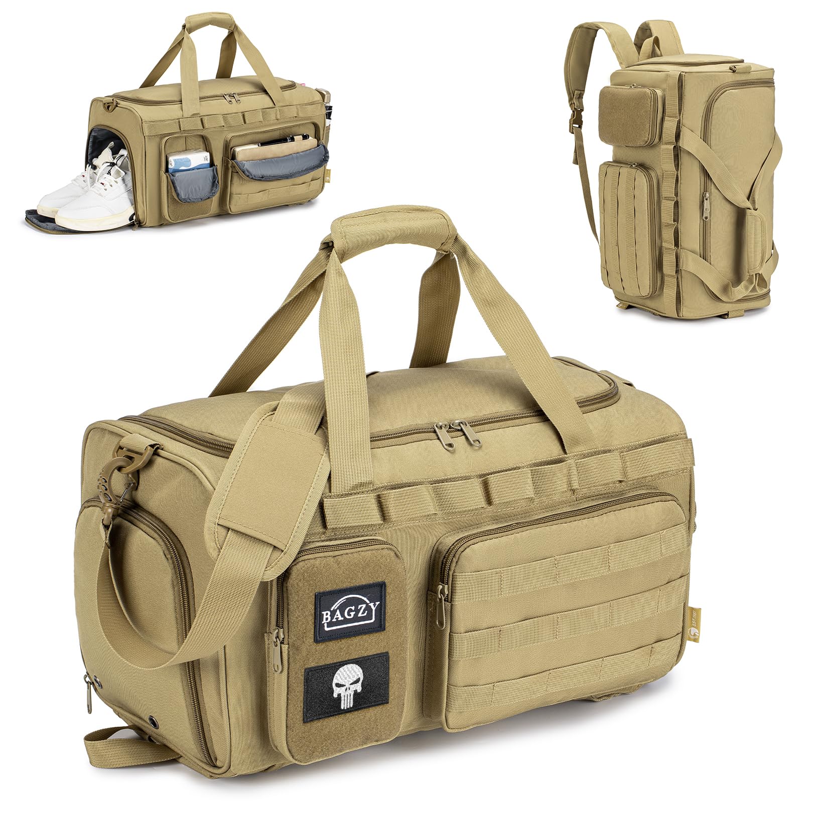 Diese taktische Sporttasche ist der perfekte Begleiter für alle Unternehmungen! Mit 40 Liter Fassungsvolumen und durchdachten Fächern hast du alles organisiert dabei. Das belüftete Schuhfach trennt dreckige Schuhe hygienisch vom Rest, das Nassfach ist ideal für feuchte Kleidung nach dem Sport. Vorne gibt's ne Trinkflaschentasche für schnellen Zugriff und MOLLE-System für zusätzliches Zubehör. Aus robustem 900D-Gewebe, wasserabweisend und absolut strapazierfähig. Die gepolsterten Tragegriffe und der verstellbare Schultergurt (84-152cm) machen das Tragen auch voll beladen angenehm. Mit 53,3 × 26,4 × 28,4 cm passt sie perfekt in Auto-Kofferräume und als Handgepäck. Ob fürs Wochenende, Sport, Camping oder Geschäftsreisen - diese Tasche meistert alles! Die durchdachte Aufteilung mit mehreren Mesh-Fächern innen sorgt für perfekte Ordnung. Einfach ein Allrounder, der nichts zu wünschen übrig lässt - stylisch, praktisch und mega robust!