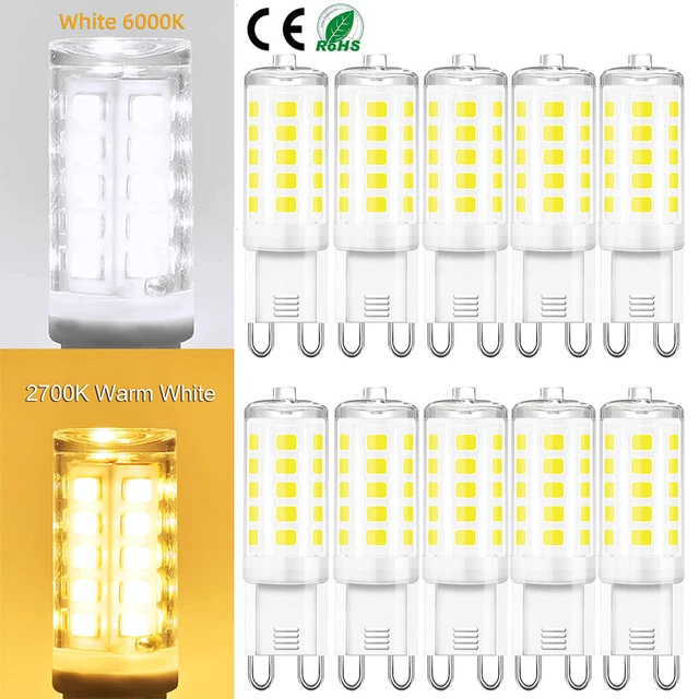 Perfektes Licht für deine Leuchten! Diese 10 G9 Halogenbirnen sind ideal für Deckenleuchten, Schrankbeleuchtung, Backofenlampen und viele andere Leuchten mit G9-Sockel. Mit 40W und 480 Lumen spenden sie angenehm warmweißes Licht (2900K), das gemütliche Atmosphäre schafft. Super praktisch: Die Birnen sind dimmbar von 10% bis 100% - so hast du immer die richtige Helligkeit für jede Stimmung. Die Qualität ist top: CE-zertifiziert, langlebig (bis zu 2000 Stunden Brenndauer) und sofort volle Helligkeit nach dem Einschalten. Die Birnen sind quecksilberfrei und sicher für dich und die Umwelt. Die beiden Stifte sind vernickelt, sodass sie nicht rosten und die Kontakte immer gut sind. Perfekt für Kronleuchter, Badezimmerleuchten, Dunstabzugshauben oder Stehlampen - überall dort, wo du gutes, warmes Licht brauchst. Beim Wechseln bitte immer Strom ausschalten und Vorsicht: Die Birnen werden heiß im Betrieb! Am besten vom Elektriker wechseln lassen, wenn du unsicher bist. Mit diesem 10er-Pack bist du lange Zeit mit Ersatzbirnen versorgt - praktisch und spart Geld!