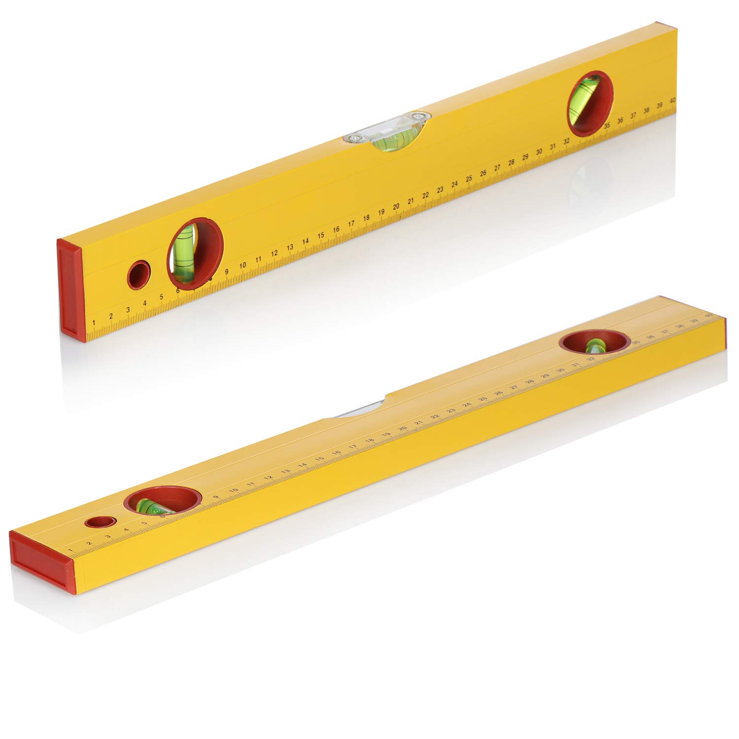 Hey, diese Wasserwaagen sind ja richtig praktisch! Im 2er-Set hast du immer eine parat. Aus robustem Aluminium mit 40cm Länge sind sie perfekt für alle Heimwerker-Projekte. Mit drei Libellen für horizontal, vertikal und 45-Grad-Winkel machst du garantiert nichts schief. Die gelb-roten Libellen sind super gut abzulesen, und die stoßfesten Endkappen schützen vor Beschädigungen. Ob beim Bilder aufhängen, Möbel aufbauen oder Renovieren - mit diesen Wasserwaagen bist du auf der sicheren Seite. Leicht, kompakt und trotzdem stabil. Einfach ein unverzichtbares Werkzeug für jede Werkzeugkiste! Die Maße von 40,5x1,5x5cm sind ideal für die meisten Arbeiten. Einfach top Qualität zum fairen Preis!