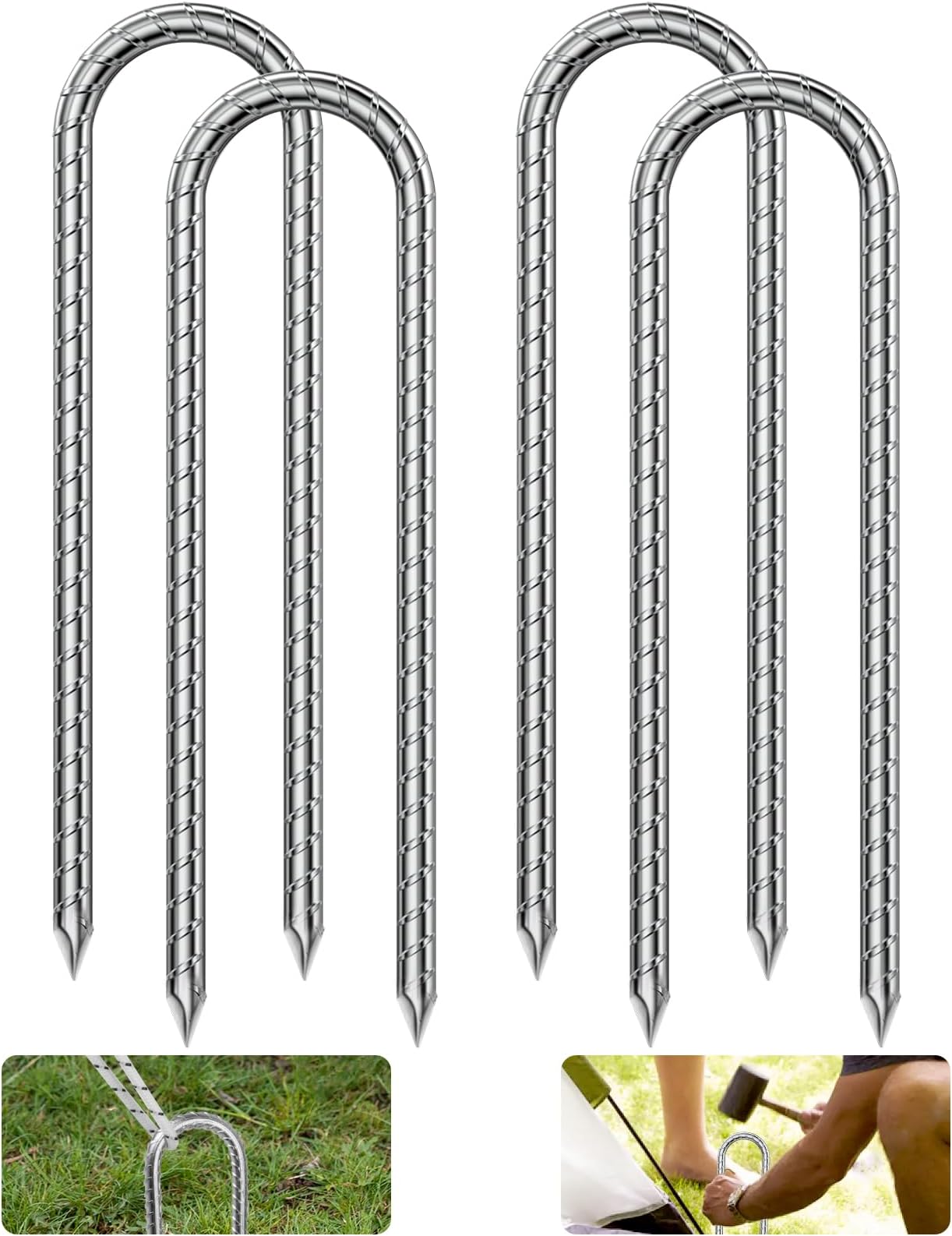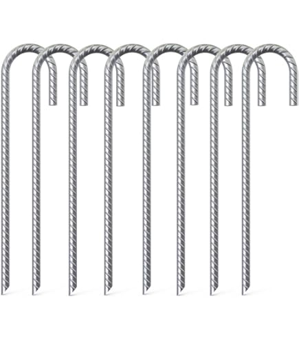 Für alles was Halt braucht! Diese 8 robusten Bodenanker aus verzinktem Stahl sind 40 cm lang bei 12 mm Durchmesser. Das J-Haken Design mit scharfer Spitze lässt sich super in Erde, Gras und sogar felsigen Boden schlagen. Perfekt für Zelte, Vordächer, Trampoline, Schaukeln und Garten-Deko. Rostfrei und wiederverwendbar - Jahr für Jahr einsetzbar! Einfach mit Hammer in den Boden schlagen und dein Zelt oder Trampolin ist bombenfest verankert. Nie wieder weggewehte Zelte oder wackelige Gartenmöbel! Outdoor-Spaß ohne Sorgen.