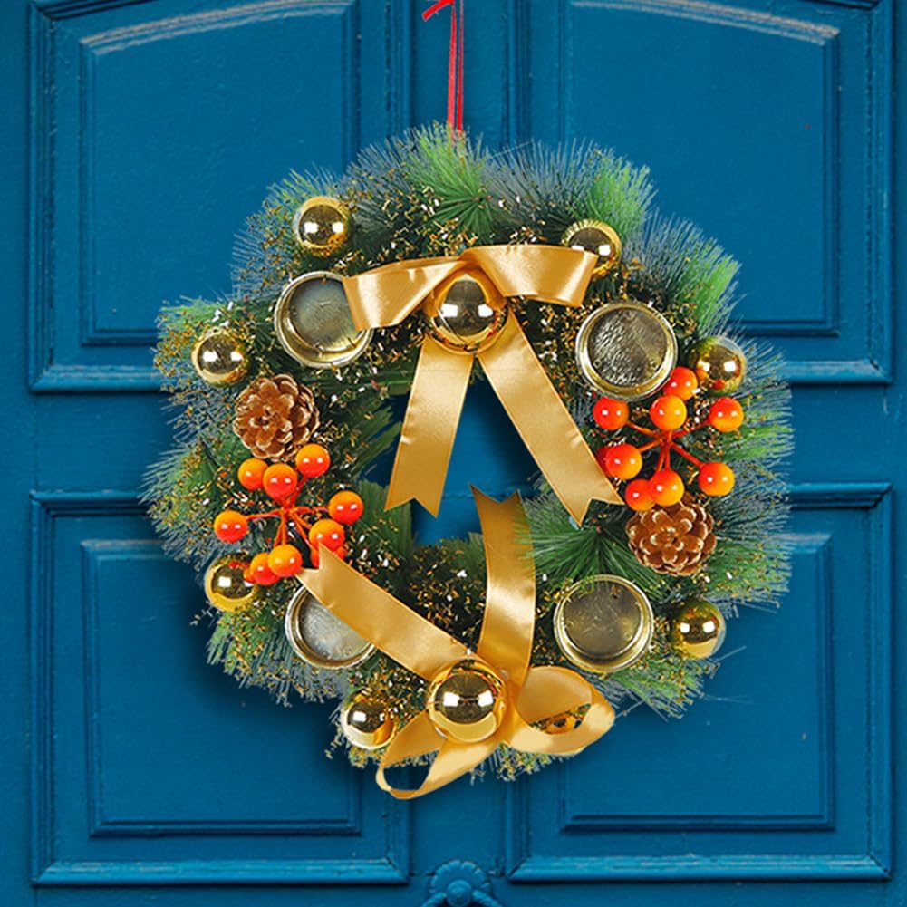 Weihnachtsstimmung garantiert! Dieser wunderschöne 40 cm Weihnachtskranz verwandelt deine Tür sofort in ein festliches Eingangstor. Mit naturgetreuen Tannenzapfen, weißen und goldenen Kugeln und eleganten LED-Lichtern - einfach magisch! Ob an der Haustür, am Fenster oder über dem Kamin - dieser Kranz bringt überall weihnachtlichen Glanz. Das wetterfeste PVC-Material hält auch draußen problemlos stand. Die eingebetteten LEDs sorgen für ein warmes, einladendes Licht, das jeden Raum gemütlicher macht. Einfach Batterien einlegen und schon leuchtet dein Zuhause in festlichem Glanz! Perfekt nicht nur für Weihnachten, sondern für die ganze Winterzeit. Auch ein tolles Geschenk für Weihnachtsfans oder zur Dekoration von Büros und Geschäften. Mach dein Zuhause bereit für die besinnliche Zeit mit diesem traumhaften Weihnachtskranz!