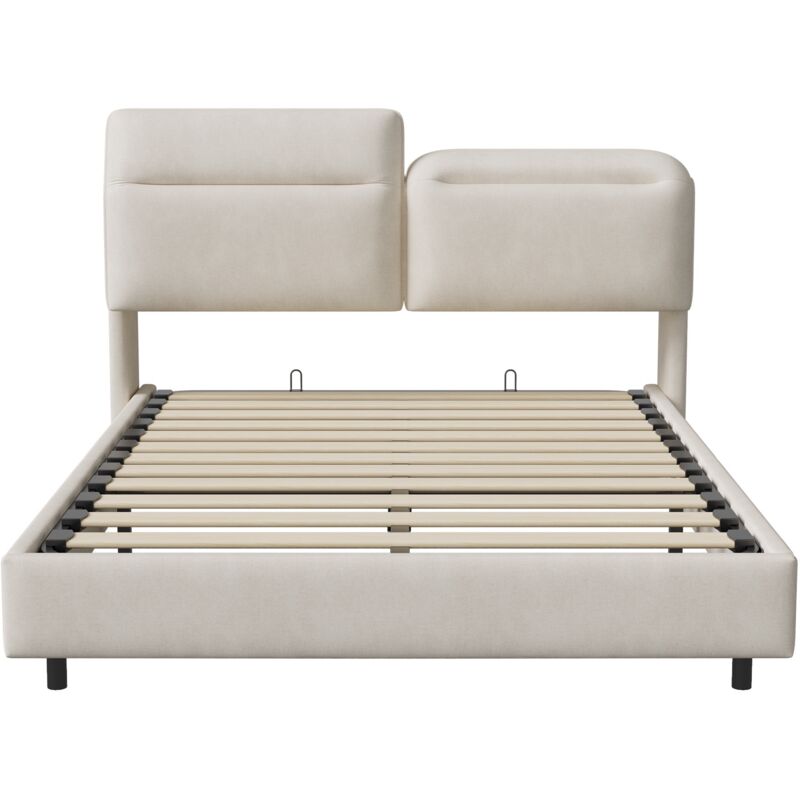 Doppelbett 140x200 Mit LED-Beleuchtung & 4 Schubladen - Höhenverstellbares Kopfteil In Beige