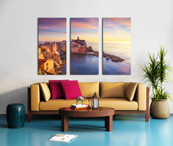 Leinwand-Bild Vernazza Italien 40x50cm - Cinque Terre Sonnenuntergang Landschaftsbild