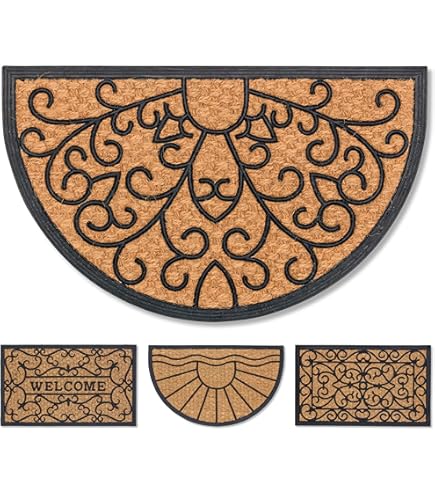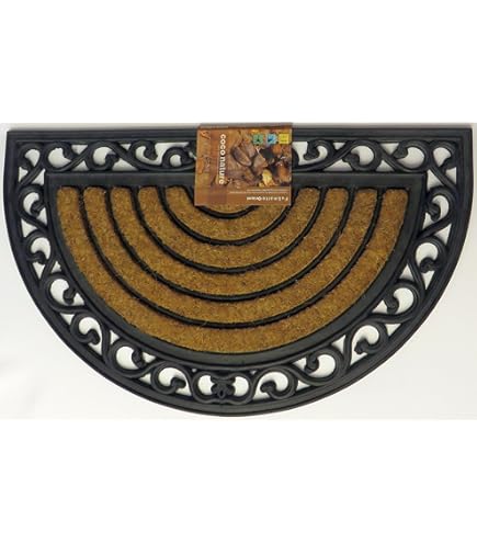 Der natürliche Schmutzfänger für deine Haustür! Diese halbrunde Kokosmatte in 40x60cm entfernt zuverlässig Sand, Schlamm und Feuchtigkeit von den Schuhsohlen. Die doppelt gewebten Kokosfasern sind extrem saugstark und langlebig, während die rutschfeste PVC-Gummirückseite für sicheren Stand sorgt - auch bei Nässe. Mit 3450g/m² ist sie schön schwer und verrutscht nicht. Das dekorative Muster in Beige und Schwarz passt zu jedem Eingangsbereich und wertet ihn optisch auf. Wetterfest und für Innen- sowie Außenbereiche geeignet, hält sie jeder Jahreszeit stand. Ein nachhaltiges Produkt aus natürlichen Kokosfasern, das nicht nur praktisch ist, sondern auch gut aussieht. Einfach vor die Tür legen und sich über weniger Dreck in der Wohnung freuen. Deine Böden werden es dir danken!