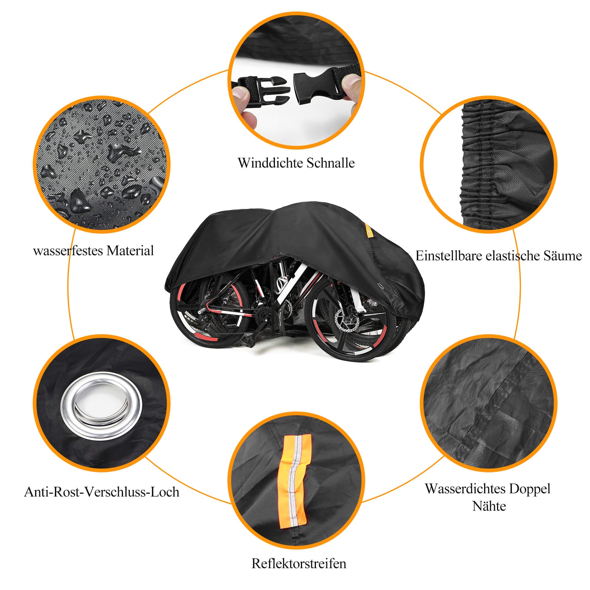 Dein Lastenrad bleibt trocken und sauber! Diese robuste Abdeckplane aus 420D Oxford-Gewebe schützt vor Regen, Schnee, Staub und UV-Strahlung. Mit 225x105x110cm passt sie perfekt auf die meisten einspurigen Lastenräder. Die innen verschweißten Doppelnähte sind 100% wasserdicht. Zwei starke Gummizüge und Klipp-Verschluss halten auch bei Wind sicher. Extra Öffnungen für dein Fahrradschloss - super praktisch! Inklusive Transportbeutel für unterwegs. Einfach überziehen, festzurren und dein Rad ist optimal geschützt. Hält ewig und sieht dabei noch gut aus.