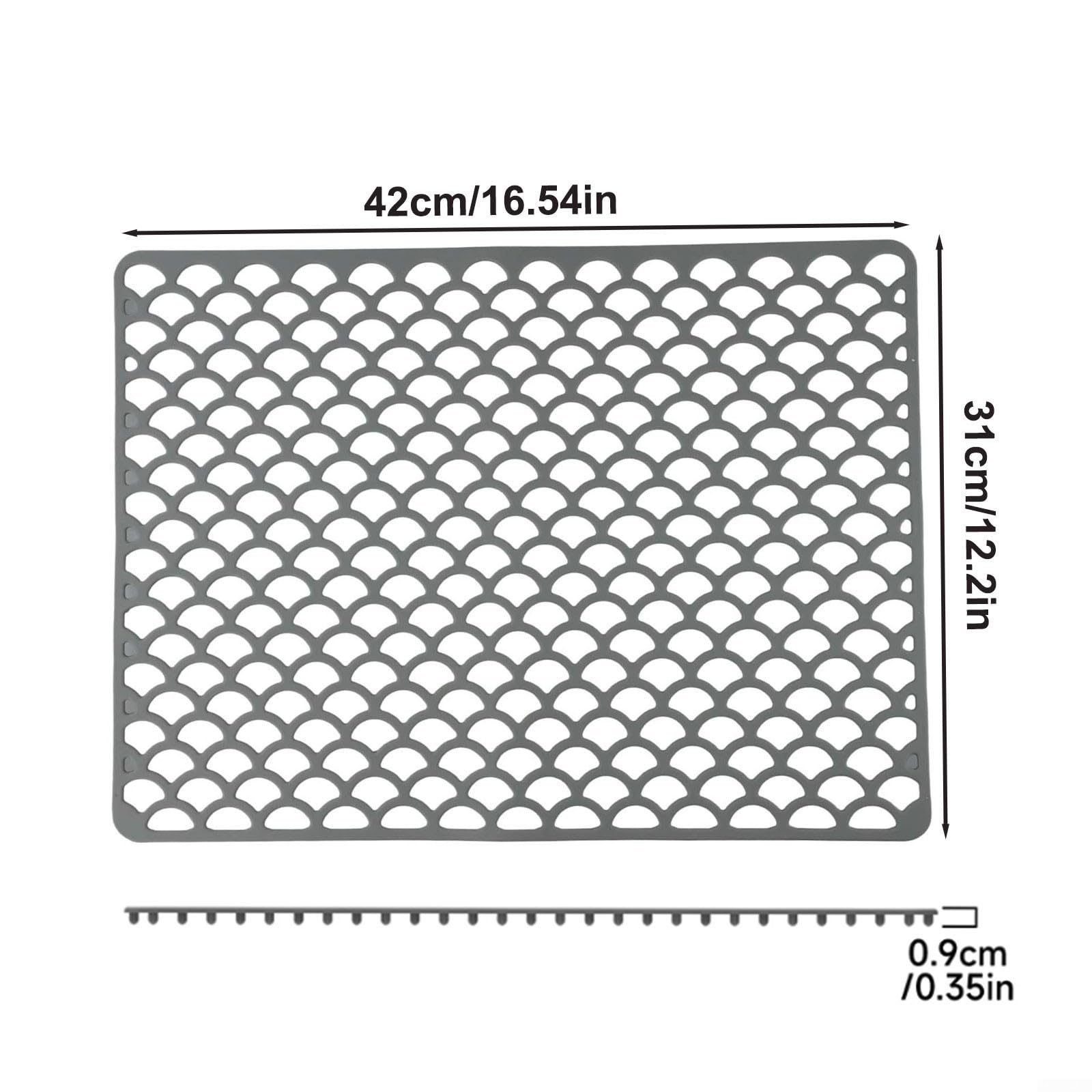 Endlich keine zerkratzte Spüle mehr! Diese Silikon-Matte schützt sowohl deine Spüle als auch dein empfindliches Geschirr vor Beschädigungen. Aus lebensmittelechtem Silikon - absolut sicher für Obst, Gemüse und alle Lebensmittel. Hitzebeständig bis 260°C, du kannst also heiße Töpfe direkt draufstellen! Die rutschfesten Füße halten die Matte sicher an ihrem Platz, und die Drainage-Löcher sorgen für optimale Wasserablauf. Besonders praktisch: Sie reduziert deutlich das Klappergeräusch von Geschirr - deine Küche wird viel ruhiger! Einfach in der Spülmaschine reinigen oder mit Seifenwasser abwaschen. Mit 42x31cm passt sie perfekt in die meisten Standard-Spülbecken. Flexibel faltbar für platzsparende Aufbewahrung. Ein echter Küchen-Helfer, der das Spülen angenehmer und sicherer macht!