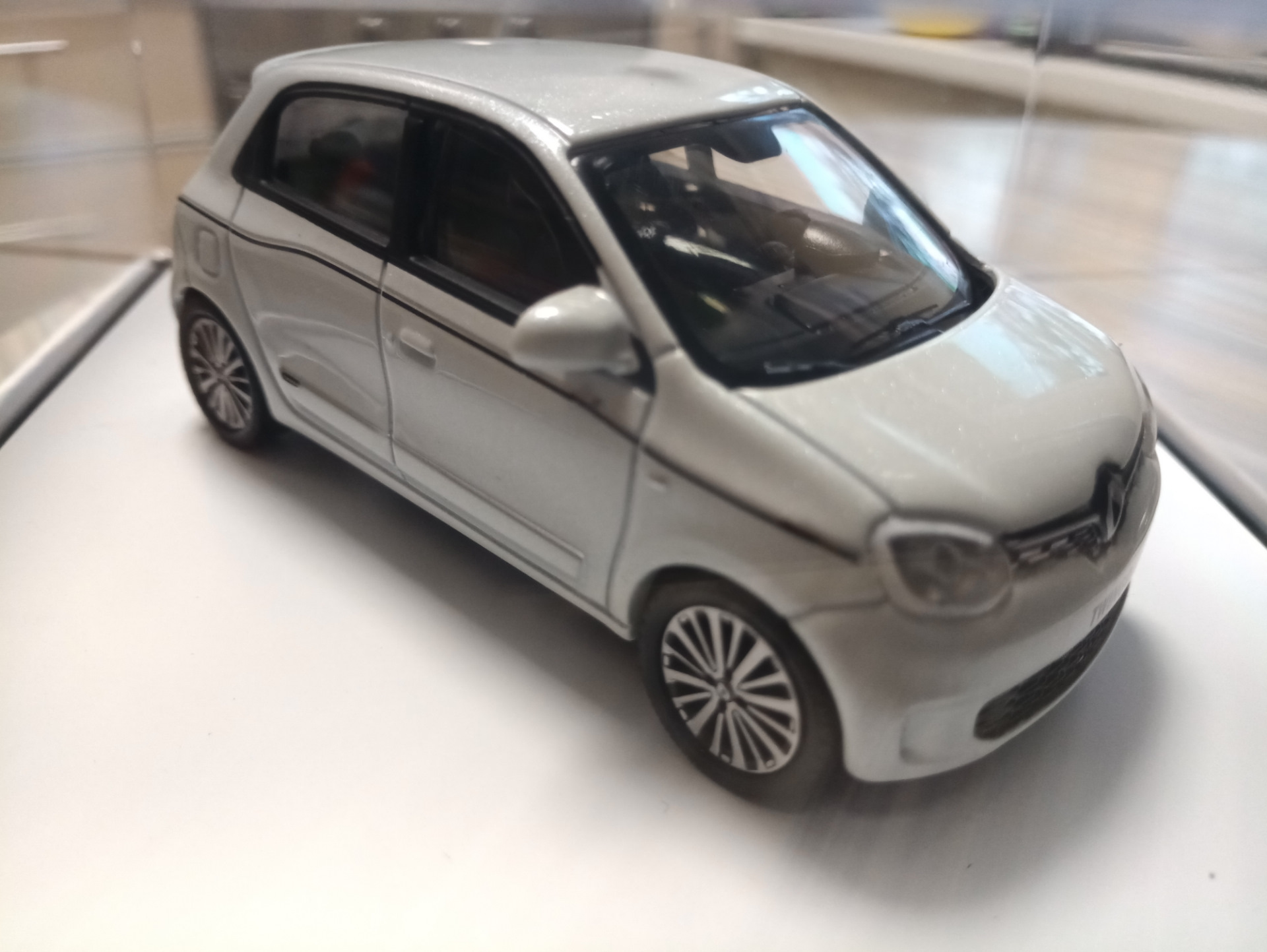 Auto-Fans aufgepasst! 🚗 Dieses wunderschöne Renault Twingo III Modellauto von Norev ist ein absolutes Must-Have für jede Sammlung!\\n\\nDer Twingo in Quartz Weiß zeigt die 3. Generation (ab 2014) in der Facelift-Version von 2019 - also ganz aktuell! Mit 5 Türen und allen Details, die das Original so besonders machen.\\n\\nDas Modell ist etwa 8,5 cm lang und besteht aus Metall mit Plastikteilen - genau richtig für die 1:43 Scale! Es fühlt sich richtig wertig in der Hand an und die Verarbeitung ist einfach top! 👌\\n\\nGeliefert wird das Auto in der originalen Renault-Verpackung inklusive abnehmbarem Sockel und Vitrine. Perfekt zur Aufbewahrung und Präsentation! So bleibt dein Sammlerstück staubfrei und geschützt.\\n\\nDie Details sind einfach beeindruckend: Von den Scheinwerfern über die Felgen bis hin zur Innenraumgestaltung - alles ist liebevoll umgesetzt! Selbst die kleinen Renault-Logos sind sauber gedruckt.\\n\\nOb als Geschenk für Auto-Begeisterte, zur Vervollständigung deiner Sammlung oder einfach als Deko fürs Regal - dieses Modellauto macht immer eine gute Figur!\\n\\nTipp: Stell es doch ins Büro oder Wohnzimmer - es ist ein super Gesprächsstarter!\\n\\nNorev ist bekannt für hochwertige Modellautos, und dieses hier ist keine Ausnahme! Die Qualität stimmt einfach!\\n\\nHol dir jetzt dieses coole Twingo-Modell und erweitere deine Sammlung um ein weiteres Highlight! Einfach in den Warenkorb und freuen! 🎯