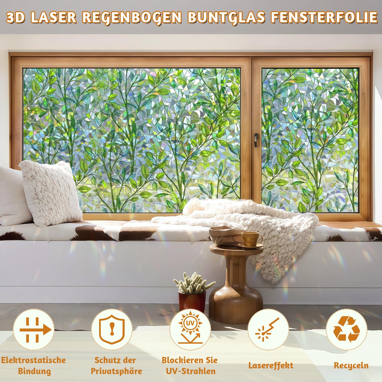 Lass deine Fenster in Regenbogenfarben erstrahlen! Diese coole Folie sorgt für Privatsphäre, aber lässt trotzdem Licht rein. 44,5x200cm groß, statisch haftend - also kein Kleber, keine Rückstände! Einfach mit Wasser anbringen, mit nem Rakel glatt streichen, fertig. Blockiert 96% der schädlichen UV-Strahlen, schützt Möbel vor Ausbleichen. Der Laser-Effekt zaubert bunte Regenbogen-Lichter in deinen Raum. Perfekt für Büro, Wohnzimmer, Badezimmer - überall wo du neugierige Blicke aussperren willst. Und wenn du umziehst: einfach abziehen und woanders wieder anbringen!