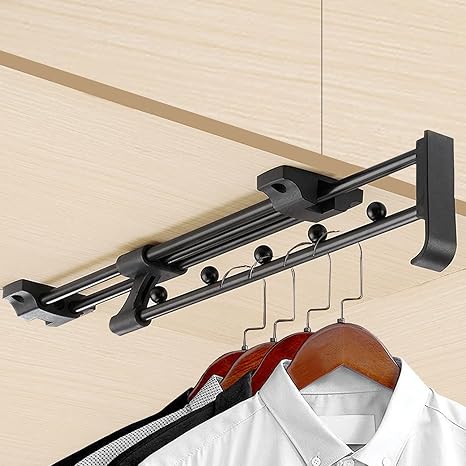 Endlich Ordnung im Schrank! Diese ausziehbare Kleiderstange von Huucozn ist der Game-Changer für deine Kleiderorganisation. Von 30 cm auf 44 cm verlängerbar, passt sie in fast jeden Schrank oder jedes Regal. Mit 5 praktischen Trennsegmenten hältst du Hemden, Hosen, Krawatten und Schals perfekt getrennt - kein Chaos mehr! Aus robustem Kaltstahl und Aluminium gebaut, trägt sie bis zu 20 kg. Die mattschwarze Oberfläche sieht super edel aus und passt zu jedem Einrichtungsstil. Montage ist kinderleicht: Einfach die Halterungen mit den 4 mitgelieferten Schrauben befestigen, Stange reinschieben - fertig! Perfekt für kleine Schränke, Garderoben oder als zusätzliche Aufhängung. Mach deinen Schrank endlich übersichtlich und finde sofort was du suchst!
