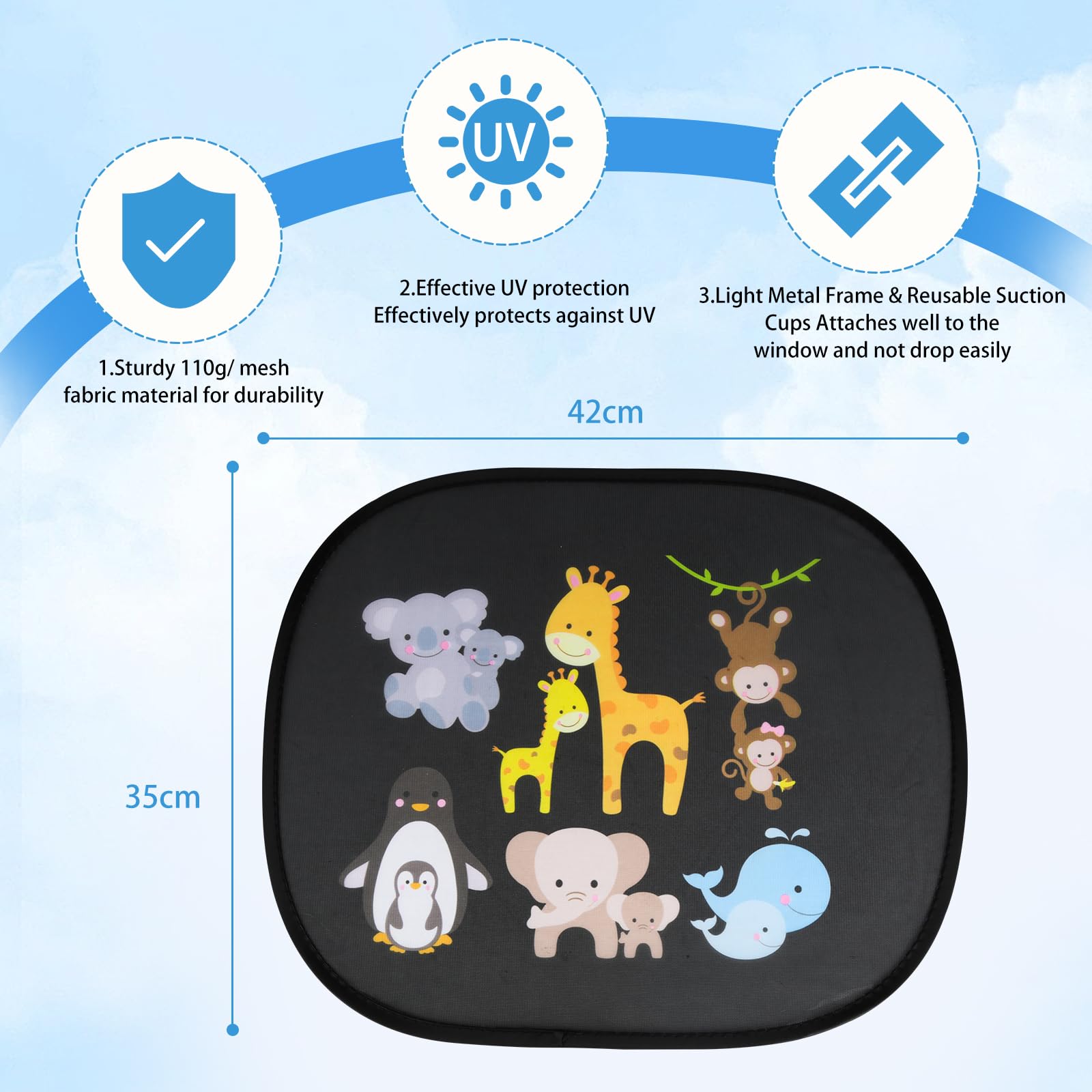 Boah, diese Sonnenschutz-Blenden fürs Auto sind ja richtig praktisch für Familien mit Kindern! Im 2er-Set kannst du beide Seitenscheiben abdecken und so deine kleinen Passagiere vor schädlicher UV-Strahlung schützen. Mit 44x36 cm Größe passen sie an die meisten Fahrzeugmodelle - ob SUV, Limousine oder Kleinwagen. Das Polyester-Material bietet 98% UV-Schutz und die elektrostatische Haftfolie sorgt für rückstandslose Montage. Einfach an die Scheibe drücken, fertig! Die niedlichen Bärenmotive unterhalten die Kinder während der Fahrt und reduzieren Reiseunruhe. Dank des Stahlrings und des flexiblen Materials lassen sich die Blenden platzsparend zusammenfalten und ins Handschuhfach legen. Besonders praktisch bei langen Fahrten oder wenn das Auto in der Sonne parkt. Also, wenn du deine Kinder und Haustiere vor der Sonne schützen willst, sind diese Sonnenschutz-Blenden genau das Richtige! Einfach anbringen und entspannt fahren - mehr Komfort geht kaum!