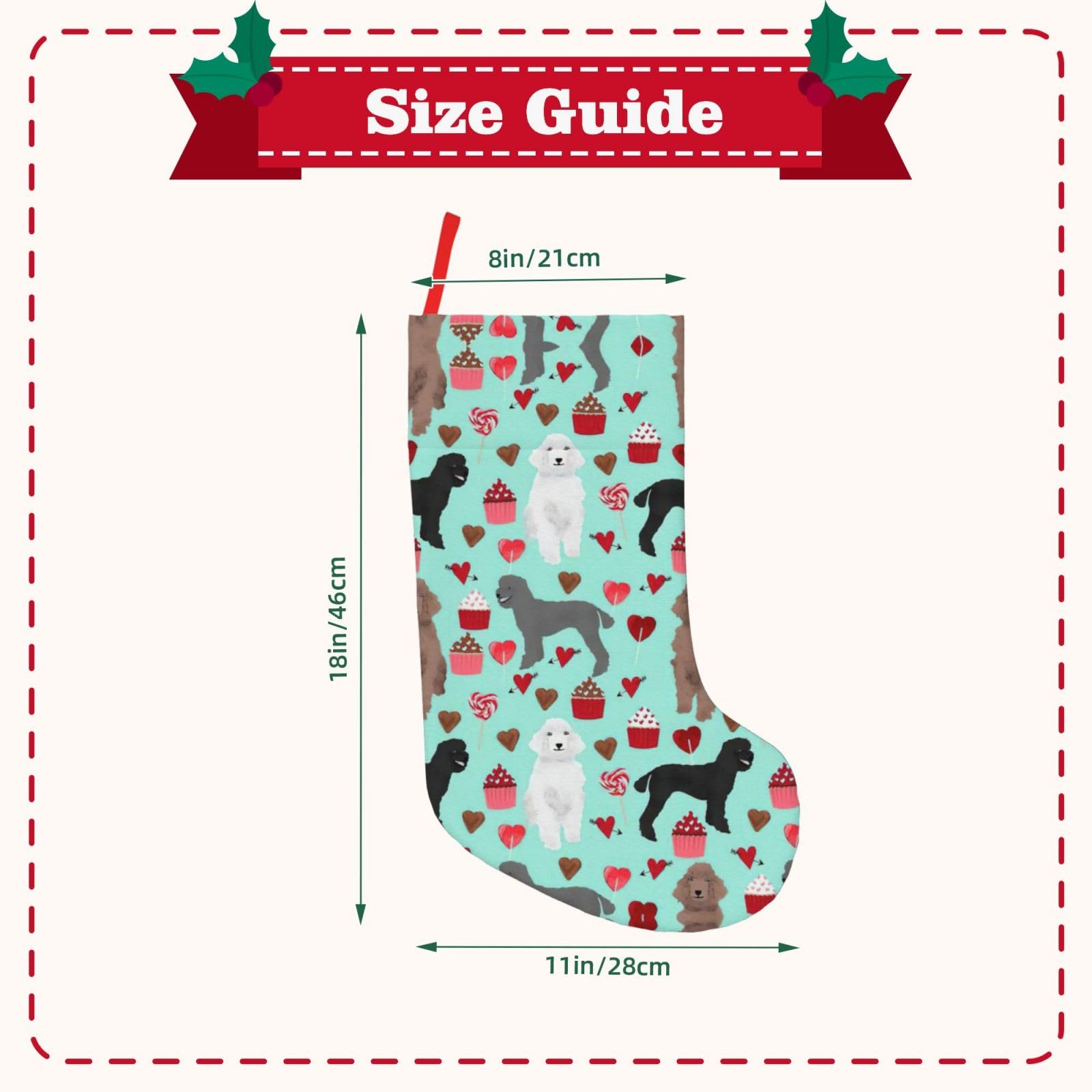 Oh, dieser Weihnachtsstrumpf mit dem süßen Pudel-Aufdruck ist einfach nur niedlich für die Festtage! Mit 27,9cm Breite und 45,9cm Länge bietet er reichlich Platz für Geschenke, Süßigkeiten oder kleine Spielzeuge. Aus weichem Plüschstoff gefertigt, der nicht nur schön aussieht sondern auch langlebig ist. Die Nähte sind aus leichtem Flanell-Material, sorgfältig verarbeitet für eine angenehme Haptik. Mit dem praktischen Gurtband an der Öffnung einfach aufzuhängen - ob am Kamin, Weihnachtsbaum oder an der Wand. Bringt sofort festliche Stimmung in dein Zuhause und ist perfekt für Weihnachtsfeiern, Gemeinschaftsaktivitäten oder einfach als Deko im Büro. Fülle ihn mit kleinen Überraschungen wie Geschenkkarten, Pralinen oder Süßigkeiten und verbreite weihnachtliche Freude. Ein charmantes Accessoire, das Jahr für Jahr für festliche Atmosphäre sorgt. Einfach aufhängen und dich auf die Bescherung freuen!
