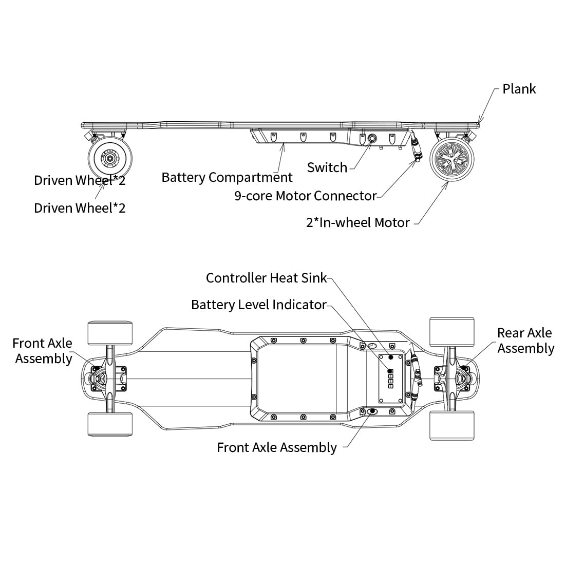 • ToyGhillied Elektro Skateboard | 2x 450W Motoren | 38 Km/h Maximalgeschwindigkeit | Wasserdicht