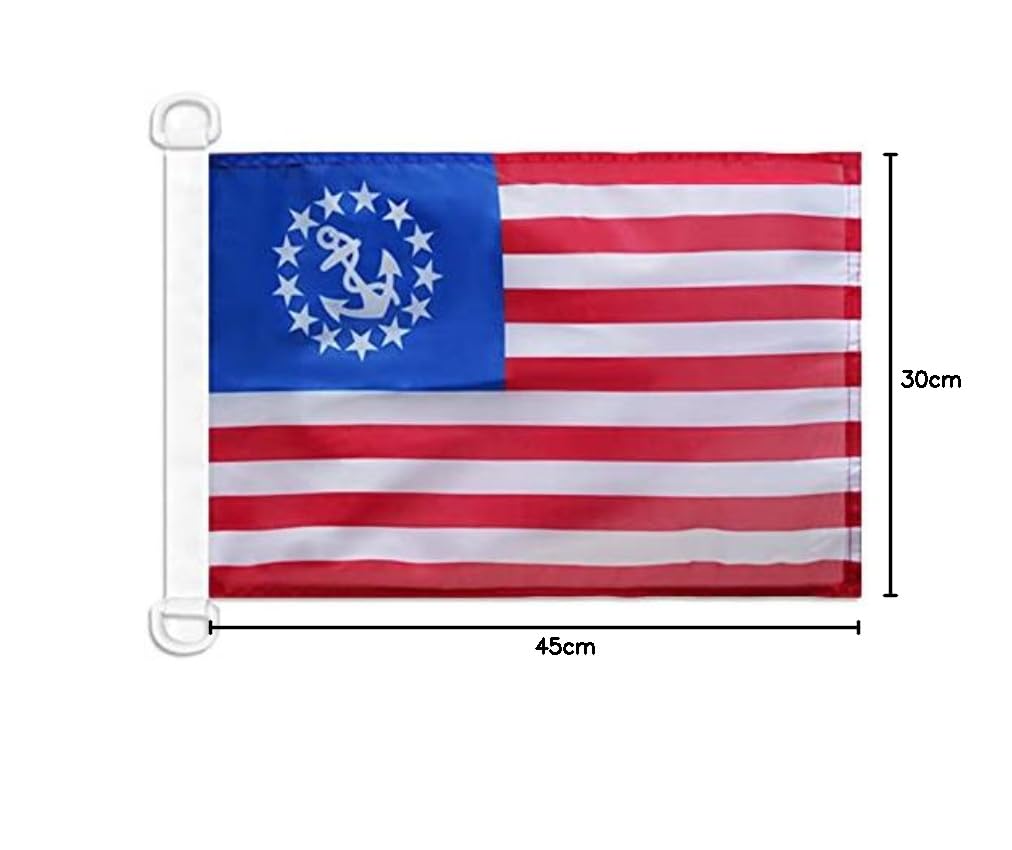Zeig deine Liebe zu den USA auf hoher See! Diese offizielle Bootsflagge in den Maßen 45x30cm ist perfekt für dein Boot, Yacht oder Segelschiff. Hergestellt aus hochwertigem 150D Polyester in nautischer Qualität - extra robust für den Einsatz auf dem Wasser. Mit doppelter Naht und verstärkten Ecken für maximale Haltbarkeit auch bei starkem Wind. Komplett mit 2 Plastikringen für einfache Befestigung am Flaggenmast. Jede Flagge wird einzeln in Blisterverpackung geliefert - ideal als Geschenk für Segel-Fans oder USA-Liebhaber. Mit nur 50g Gewicht leicht und handlich. Ob beim nächsten Segeltörn, Bootsausflug oder als Dekoration im Marine-Stil - diese Flagge macht überall eine gute Figur. Hol dir ein Stück Amerika auf dein Boot!
