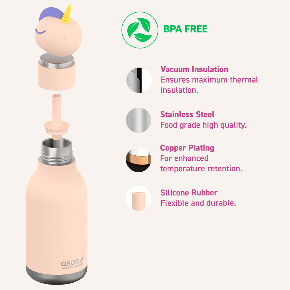 Asobu Einhorn Trinkflasche 460ml - Personalisierbare Edelstahl Isolierflasche