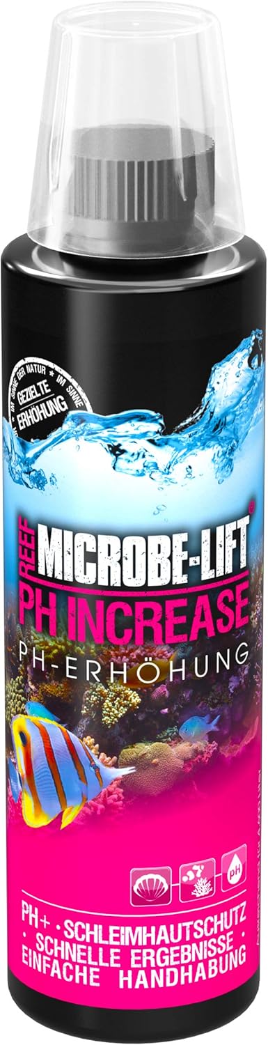 Aquarianer, aufgepasst! Dein pH-Wert im Meerwasseraquarium stimmt nicht? Mit Microbe-Lift pH Increase bringst du ihn schnell und sicher wieder ins Lot. Einfach 2,5 ml auf 80 Liter geben, um den pH-Wert um 0,1 Einheiten zu erhöhen. Das Besondere: Zusätzliche Elektrolyte schützen deine Fische vor osmotischem Schock und bewahren Kiemen und Schleimhäute. Absolut unbedenklich für Fische, Korallen und Wirbellose - das kannst du mit gutem Gewissen verwenden! Für dauerhaft stabile Werte kombinierst du es am besten mit dem Microbe-Lift pH Buffer 8.2. Made in Germany - Qualität, der du vertrauen kannst. Regelmäßige Wasser-Tests zeigen dir, wann's Zeit für eine Anpassung ist. So behältst du dein Aquarium im optimalen Bereich und deine Unterwasserbewohner bleiben gesund und munter. Ein Muss für jeden verantwortungsvollen Meerwasser-Aquarianer!
