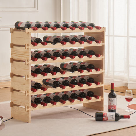 Präsentiere deine Weinsammlung stilvoll! Dieses freistehende Weinregal bietet Platz für stolze 48 Flaschen und sieht dabei noch richtig gut aus. Die massive Holzplatte oben drauf ist perfekt für Weingläser, Dekoration oder deinen Korkenzieher.
