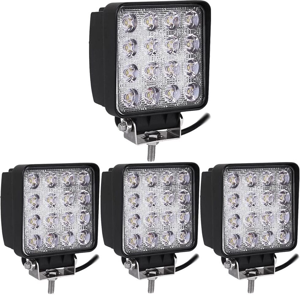Helle Sache! Diese LED Arbeitsscheinwerfer bringen richtig Licht ins Dunkel. Das 4er-Set liefert je 48W Leistung und satte 3800 Lumen Helligkeit. Mit 6000K Farbtemperatur - angenehm weißes Licht ohne Gelbstich. IP67 geschützt - das bedeutet absolut wasser- und staubdicht! Perfekt für Traktor, Bagger, Radlader oder LKW. Aber auch für ATV, Jeep oder Wohnmobil super geeignet. Die Aluminium-Gehäuse sind stoßfest und langlebig. Als Rückfahrscheinwerfer, Arbeitsleuchte oder Zusatzbeleuchtung - vielseitig einsetzbar. Flutlicht-Strahl mit 60 Grad Winkel - breite Ausleuchtung statt punktuell. Betrieb mit 10-30V DC - passt zu den meisten Fahrzeugen. Lebensdauer bis zu 30.000 Stunden - du wirst diese Leuchten ewig nutzen können! Einfache Montage - Befestigungsmaterial ist im Lieferumfang enthalten. Nie wieder im Dunkeln arbeiten oder fahren! Diese LED-Leuchten sind ein echter Upgrade für jedes Fahrzeug. Hol dir das Set und sieh was du bisher verpasst hast!