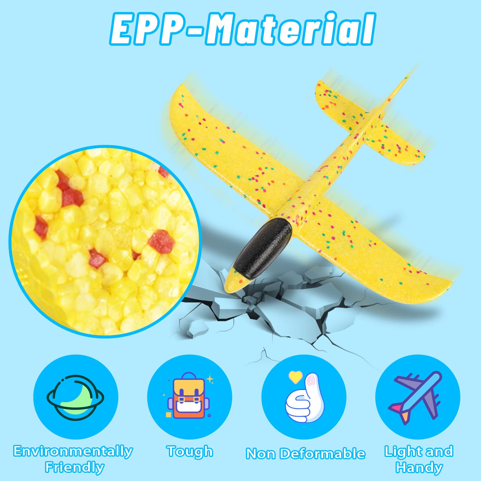 Abheben mit Licht-Effekten! Dieses coole Wurfflugzeug mit LED-Beleuchtung bringt Action ins Kinderzimmer und nach draußen. Mit 48cm Spannweite aus flexiblem Schaumstoffmaterial ist es leicht, robust und bricht nicht so schnell. Einfach werfen und zusehen, wie es elegant durch die Luft gleitet. Die LED-Lichter im Flugzeugkopf machen es besonders bei Dämmerung zu einem echten Hingucker. Perfekt für Kinder, um motorische Fähigkeiten, Beobachtungsgabe und räumliches Denken zu trainieren. Super für Eltern-Kind-Aktivitäten - gemeinsam Flugzeuge werfen und dabei quality time genießen. Aber Vorsicht: Am besten auf freien Flächen spielen, damit niemand verletzt wird und das Flugzeug nicht gegen Hindernisse knallt. Ideal für Geburtstage, Gartenpartys oder einfach für den nächsten Parkbesuch. So macht Spielen an der frischen Luft richtig Spaß!