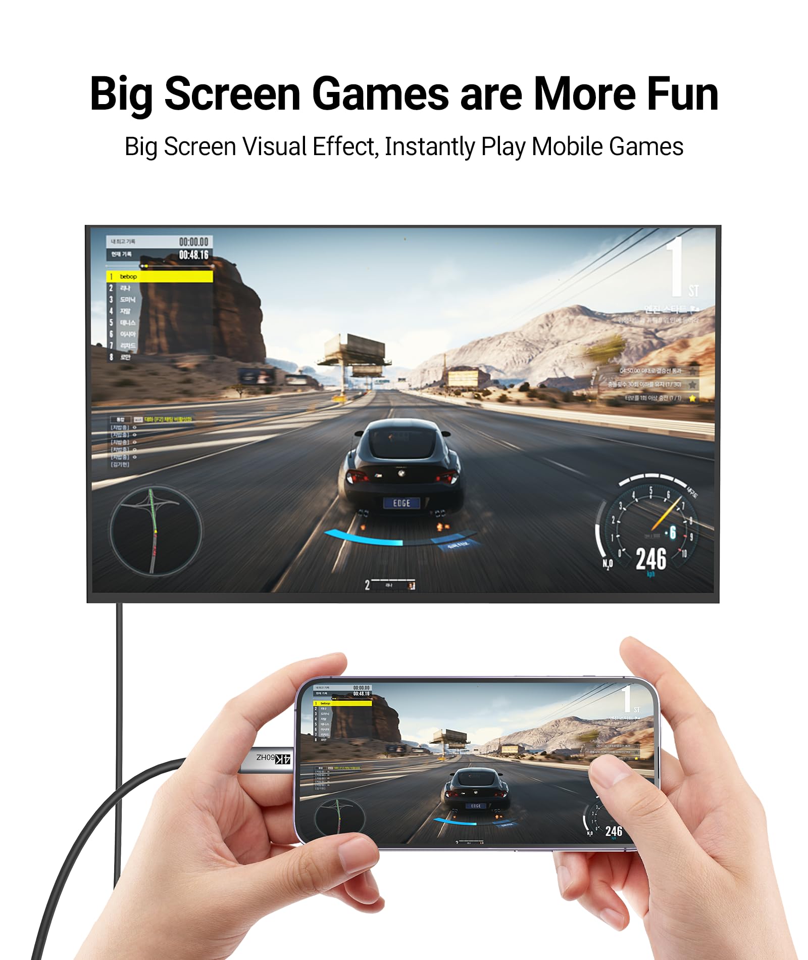 Wichtig: Nicht jedes USB-C Gerät unterstützt Video-Out! Check vorher ob dein Handy oder Tablet mitspielt. Aber wenn ja - dann wird's krass! 4K Streaming ohne WLAN Probleme, erweiterter Desktop für produktives Arbeiten, oder Zocken auf dem großen Screen. Ein Kabel, tausend Möglichkeiten!