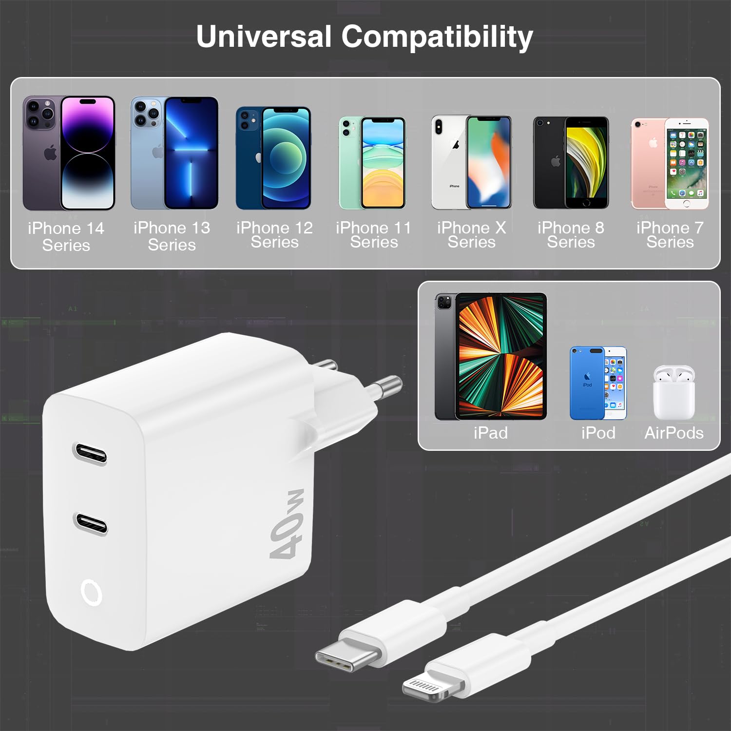 Nie wieder Ladekabel-Suche! Dieses 4er-Set hat alles: 2x 20W USB-C Netzteile und 2x 1M Kabel. Lädt dein iPhone 11, 12, 13, 14 (alle Modelle!) bis zu 3x schneller als alte 5W-Lader. Mit Sicherheitschip - schützt vor Überladung, Überstrom und Überhitzung. Netzteile sind super kompakt - ideal für unterwegs. Ein Set für daheim, eins für die Arbeit - oder mit der Familie teilen. Kompatibel mit fast allen iPhones ab Series 8. Einfach anschließen und schnell aufladen!