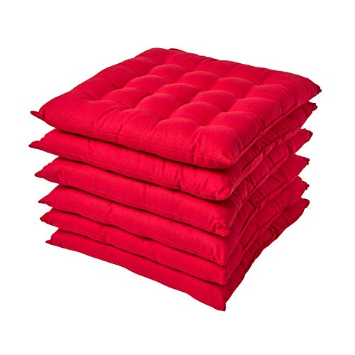 Mach deine Stühle richtig gemütlich! Dieses 4er-Set Stuhlkissen von Homescapes in rot-weißem Streifendesign verwandelt jeden harten Stuhl in eine Wohlfühloase. Mit 40x40 cm und ca. 6,5 cm Dicke bieten sie optimalen Sitzkomfort. Perfekt für Esszimmer, Küche oder Garten - die Kissen sind für drinnen und draußen geeignet. Der Bezug aus 100% Baumwolle ist atmungsaktiv und mit Polyester fasern gefüllt. Besonders praktisch: Der verstellbare Knopfverschluss sorgt für sicheren Halt auf jeder Stuhllehne. Und das Beste - alles ist bei 60°C waschbar und trocknergeeignet! OEKO-TEX zertifiziert, also absolut schadstoffgeprüft und hautverträglich. Homescapes steht seit über 25 Jahren für Qualität in Heimtextilien. Ob für die tägliche Nutzung im Homeoffice oder für gemütliche Abende im Garten - diese Kissen halten, was sie versprechen. Einfach aufziehen, festknöpfen und entspannen!