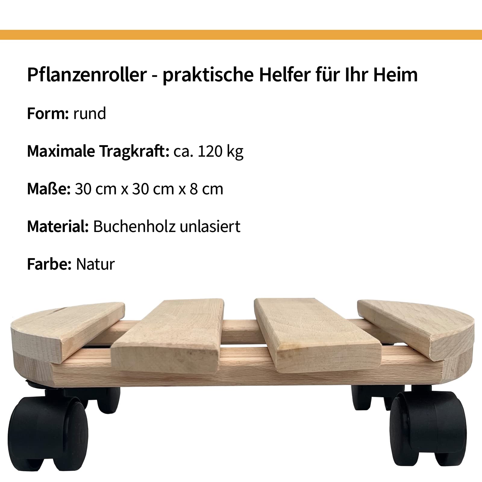Schwere Pflanzenkübel oder Möbel verschieben war noch nie so einfach! Dieses 4er-Set von SUSTANIA besteht aus massivem Buchenholz und sieht nicht nur super aus, sondern ist auch extrem stabil. Jeder Rolluntersetzer hat satte 30 cm Durchmesser und trägt bis zu 120 kg - da kannst du selbst die schwersten Pflanzen problemlos bewegen. Die 360° Lenkrollen aus robustem Kunststoff lassen sich in alle Richtungen drehen, super praktisch! Mit nur 5 cm Höhe sind sie diskret und passen sich jedem Einrichtungsstil an. Die anthrazite Farbe ist zeitlos elegant und die runde Form ohne Ecken sieht einfach klasse aus. Nicht nur für Pflanzen geeignet - auch Möbel, Dekoelemente oder andere schwere Gegenstände lassen sich damit mühelos verschieben. Einfach unterstellen und losschieben!