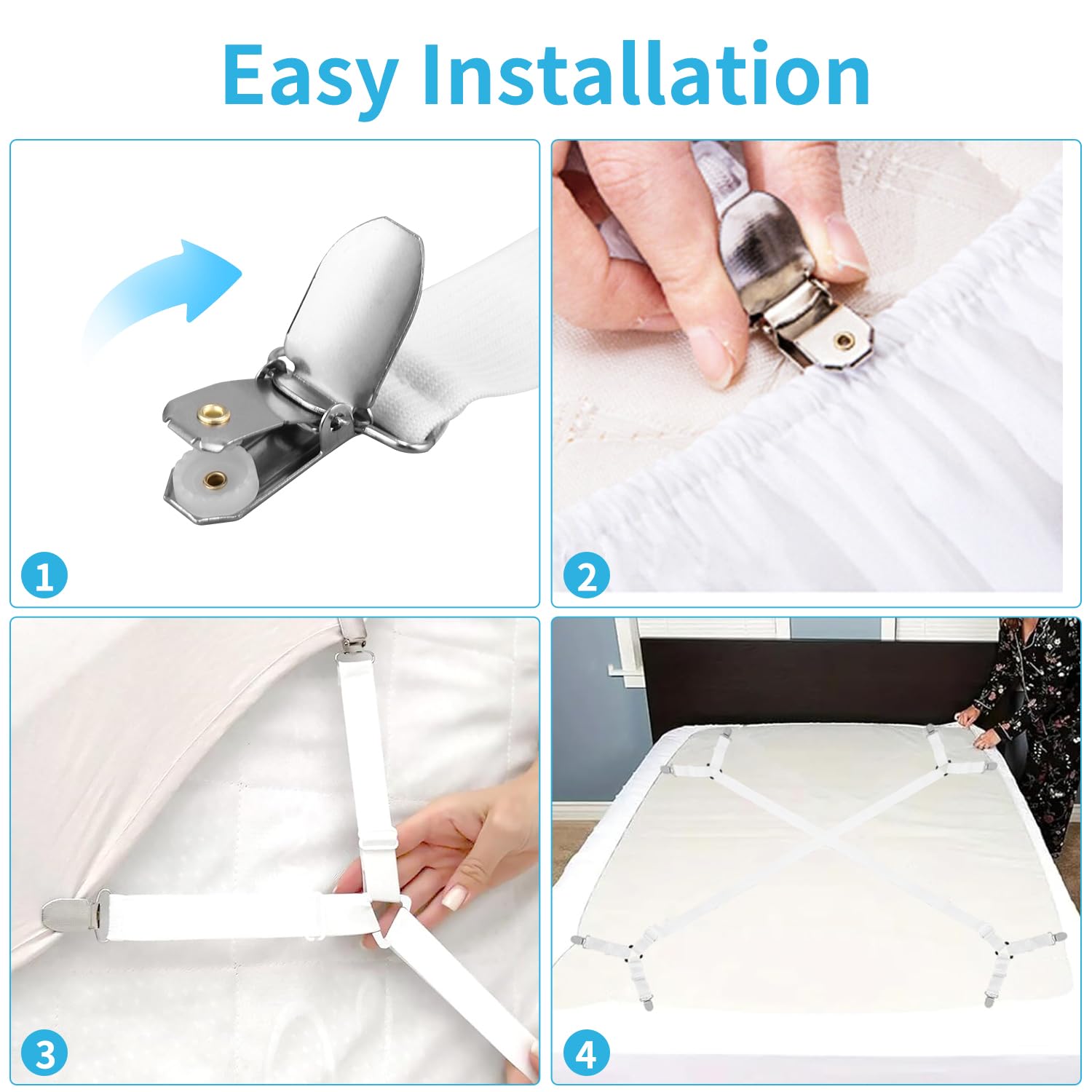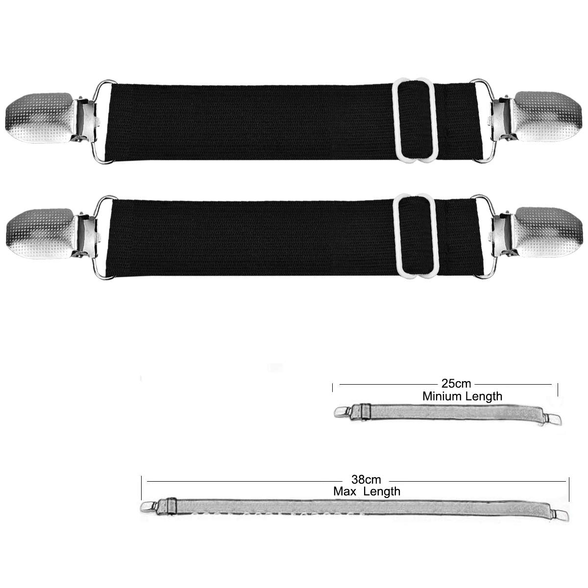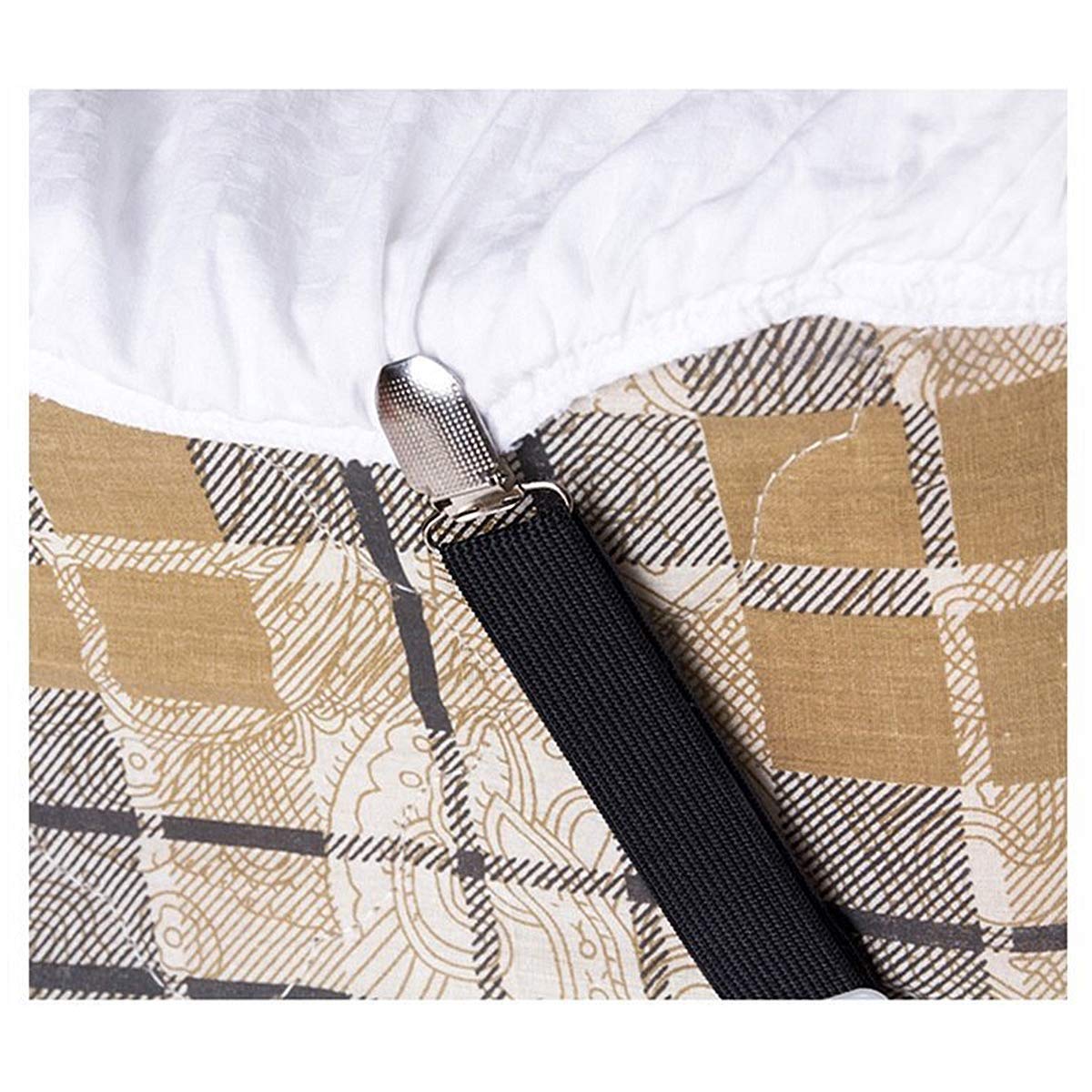 Schluss mit verrutschten Bettlaken! Diese 4 verstellbaren Lakenspanner halten dein Bettlaken bombenfest. Von 70 cm bis 280 cm einstellbar - passen also für alle Bettgrößen, von Einzelbett bis King Size. Die elastischen Bänder sorgen für starke Spannung, sodass keine lästigen Falten mehr entstehen. Mit stabilen Metallclips, die sicher halten und nicht so leicht abspringen. Endlich eine ruhige Nacht ohne dass sich das Laken löst! Einfache Installation in 3 Schritten: Clip öffnen, Laken einlegen, zuklappen - fertig! Super nicht nur für Bettlaken, sondern auch für Matratzenschoner, Sofabezüge, Tischdecken oder Bügelbrettbezüge. Aus strapazierfähigem Nylon gefertigt, halten die Spanner lange. Mach dein Bett machen zur einfachen Sache und genieße ein immer perfekt gespanntes Laken. Ob für zu Hause, Gästezimmer oder Hotel - diese praktischen Helferlein sind ein Game-Changer! Hol dir jetzt dieses Set und sag Tschüss zu verrutschten Laken!
