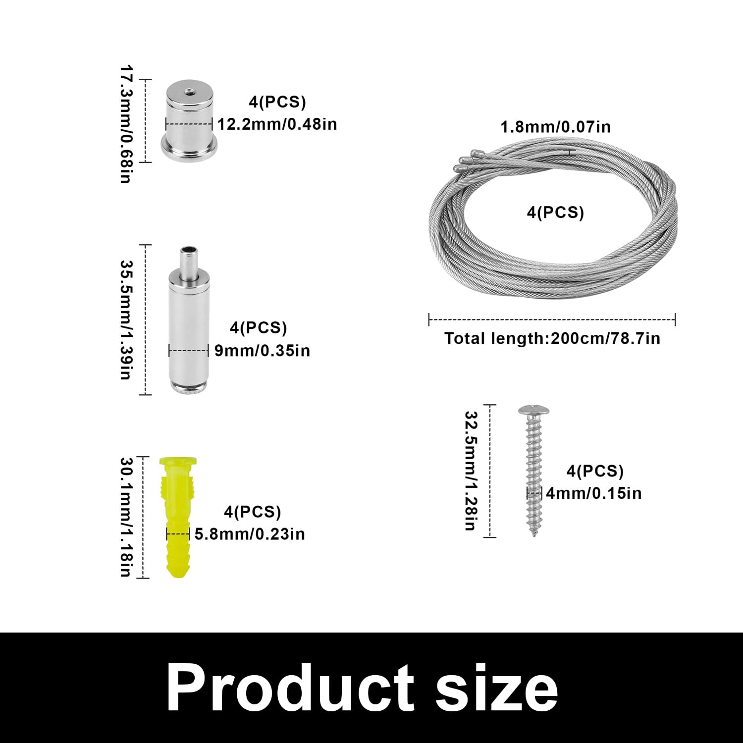 Wow, diese Lampenaufhängungen von WJUAN sind echt vielseitig! Im 4er-Set bekommst du alles, was du brauchst: Die Aufhängungen selbst, plus Schrauben und Dehnungsnägel. Die Seile sind aus Edelstahl und ganze 2 Meter lang - da kannst du die Höhe genau einstellen, wie du sie brauchst.