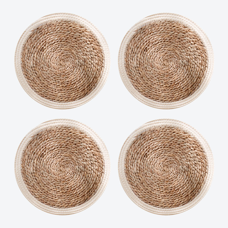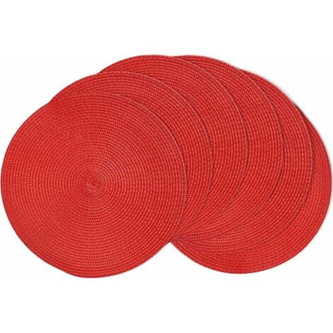 • 4er-Set Gewebte Baumwoll-Tischsets Rund - Hitzebeständige Tischunterlagen 30cm In Orange