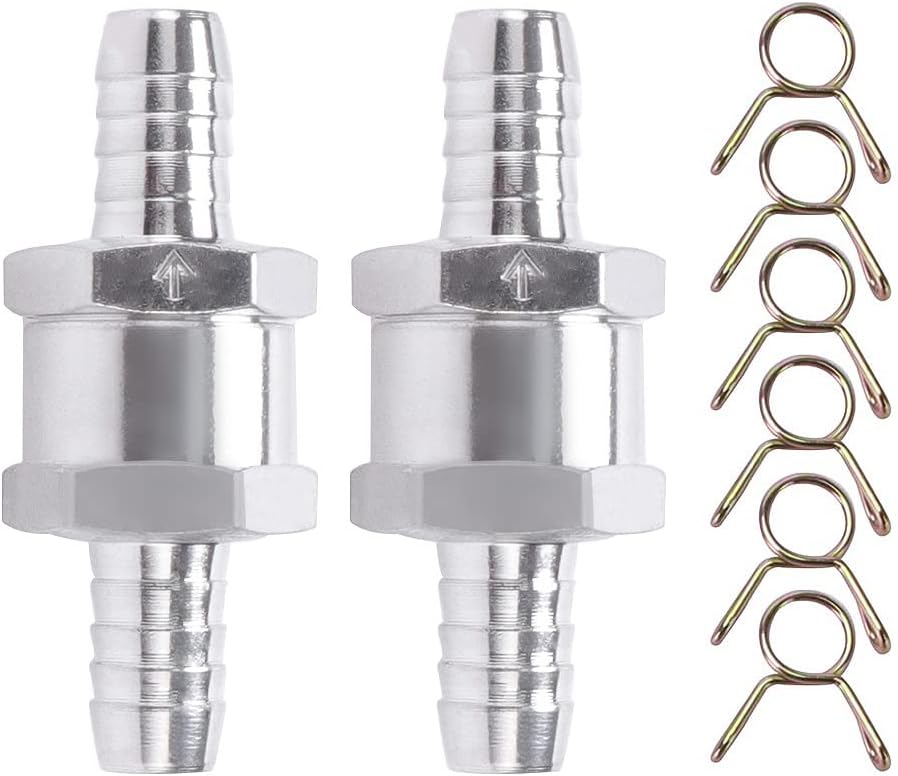 Kennst du das Problem? Dein Auto startet schwer wegen zurückfließendem Kraftstoff? Mit diesen Aluminium-Rückschlagventilen gehört das der Vergangenheit an! Das 4er-Set mit 6mm Durchmesser verhindert zuverlässig das Zurückfließen von Benzin, Diesel oder sogar Wasser in deinem Niederdrucksystem. Einfach in Flussrichtung installieren - der Pfeil zeigt dir genau, wie's geht. Die mitgelieferten 8 Federklemmen sorgen für bombenfeste Verbindungen ohne lästiges Auslaufen. Perfekt für Auto, Boot, Wohnwagen oder Motorrad. Übrigens: Hergestellt aus robuster Aluminiumlegierung, die deutlich langlebiger ist als Plastik. Wichtig: Nicht für Methanol geeignet! Maße: 6,2x2,2x0,6 cm, Gewicht 15,5 g pro Ventil. Ein echter Problemlöser für dein Fahrzeug!