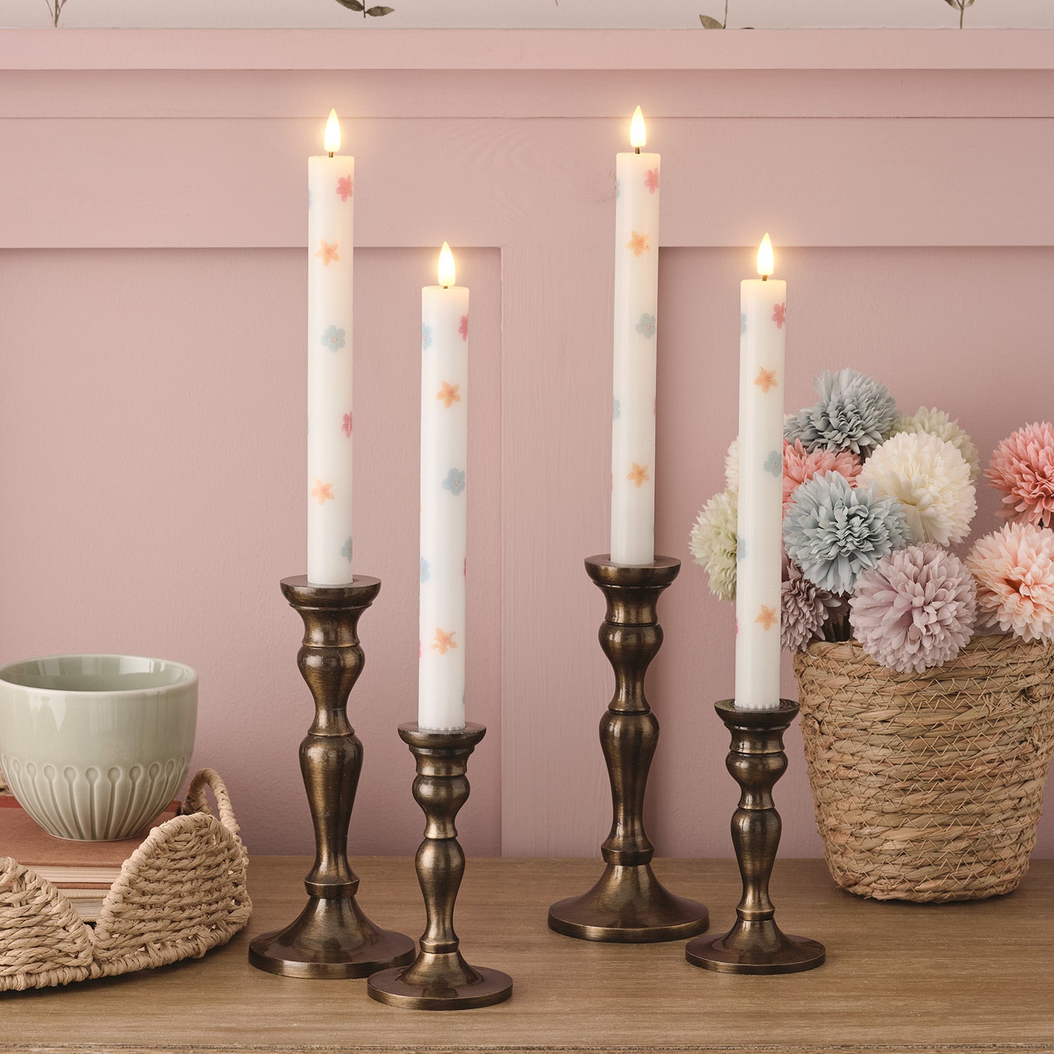 Gemütlichkeit pur mit diesen täuschend echten LED-Stabkerzen von Lights4fun! Das 4er-Set im edlen Kupfer-Look mit 22cm Höhe sieht aus wie echte Wachskerzen - inklusive flackernder LED-Flamme in warmweiß (2700K). Perfekt für herbstliche Tischdekoration, festliche Anlässe oder gemütliche Abende am Kamin. Mit praktischer Fernbedienung steuerbar und Timer-Funktion: 6 Stunden Leuchten, 18 Stunden Pause - läuft automatisch! Nur 2 AAA-Batterien pro Kerze nötig (separat erhältlich). IP20 geprüft - sicher für Innenräume ohne Brandgefahr. Passt in handelsübliche Kerzenständer und sorgt für eine unglaublich stimmungsvolle Atmosphäre. Einfach einschalten und den magischen Flammeneffekt genießen!