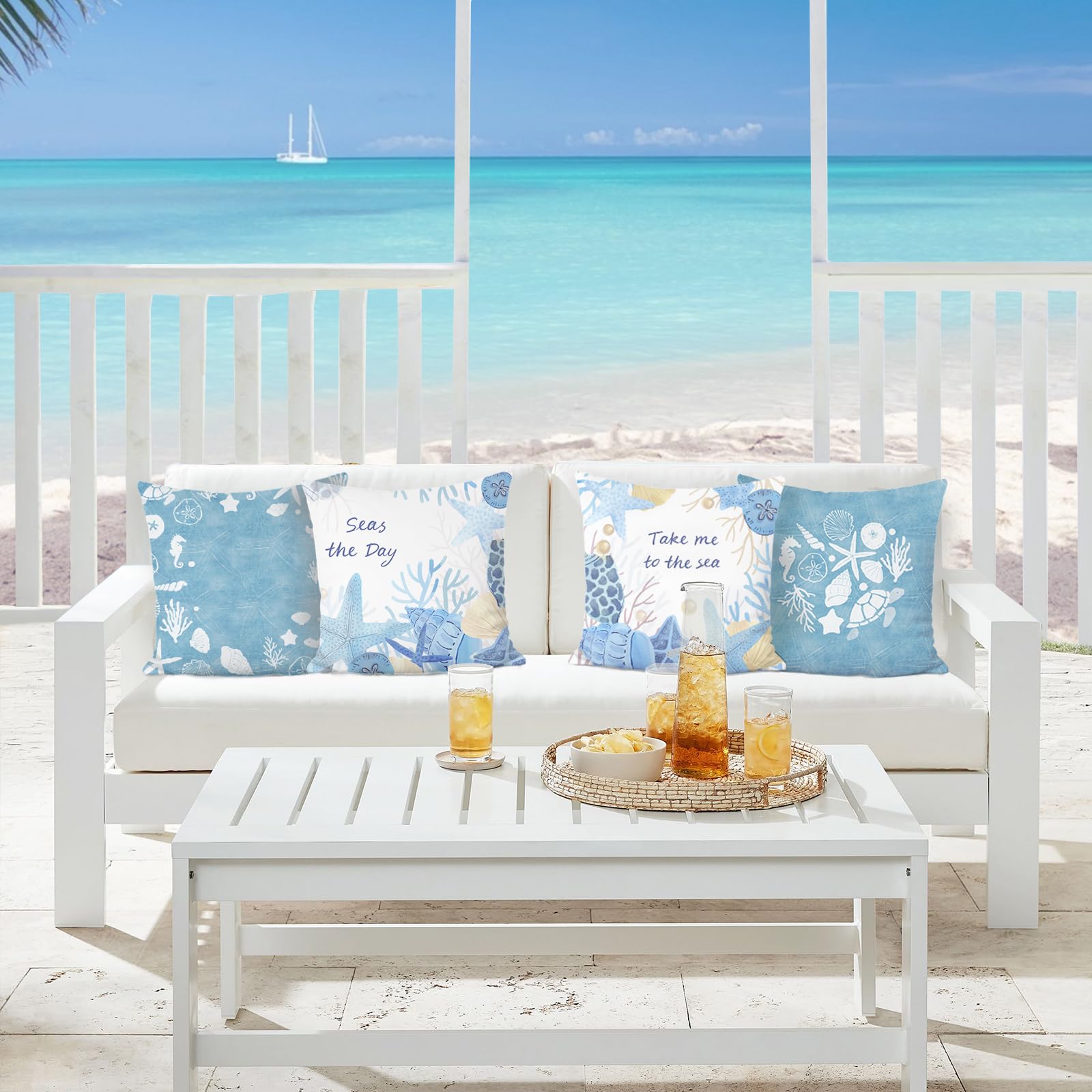 Strand Kissenbezüge 45x45cm - 4er Set Mit Tropischen Motiven Für Sofa & Wohnzimmer