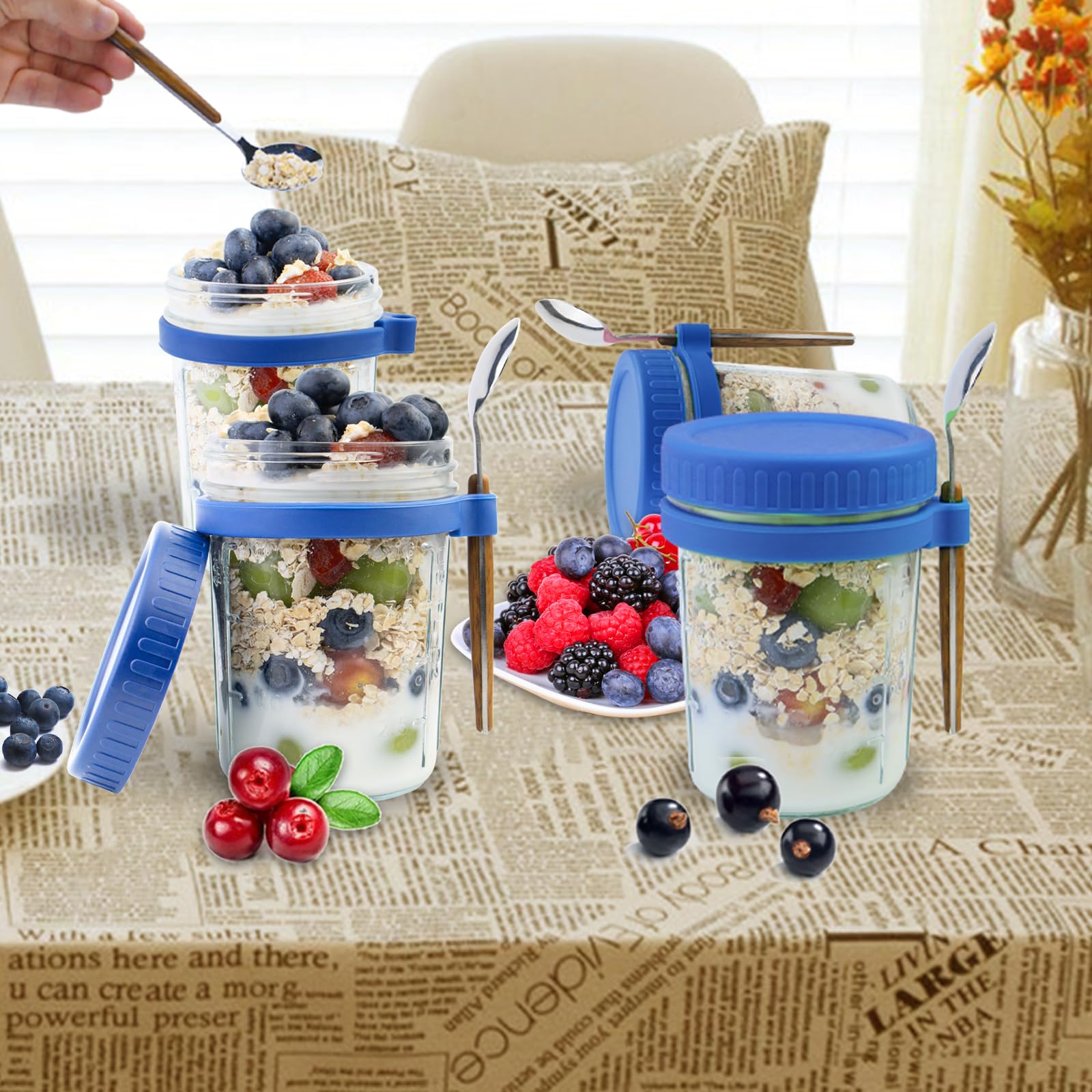 Morgens immer stressig? Mit diesen Overnight Oats Gläsern startest du entspannt in den Tag! Das 4er Set in grau und weiß sieht nicht nur super stylisch aus, sondern ist auch mega praktisch. Die 16 oz (ca. 470 ml) Glasbehälter sind perfekt für dein Meal Prep - ob Overnight Oats, Joghurt mit Müsli, Chia-Pudding oder frischer Salat. Durch die Silikondichtung ist alles absolut auslaufsicher, selbst wenn du die Gläser in deiner Tasche transportierst. Jedes Glas kommt mit einem passenden Deckel UND einem praktischen Löffel - so hast du immer Besteck dabei! Die stapelbare Form spart Platz im Kühlschrank und die lebensmittelechten Glaswände sind komplett plastikfrei. Super für alle, die gesund und bewusst essen wollen, aber morgens wenig Zeit haben. Einfach abends vorbereiten, in den Kühlschrank stellen und morgens nur noch einpacken - so einfach kann gesunde Ernährung sein! Perfekt fürs Büro, Uni oder unterwegs. Und das nordische Design sieht in jeder Küche einfach klasse aus!