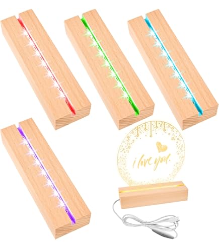 Präsentiere deine Schätze in perfektem Licht! 4 elegante Holzsockel mit bunten LED-Lichtern, die deine Acrylplatten, Kristalle oder Glasobjekte ins rechte Licht rücken. Jeder Sockel misst 30x45x150mm mit 5mm breitem Schlitz - perfekt für Standard-Acrylplatten. Einfach per USB anschließen (keine Batterien nötig!) und schon erstrahlen deine Ausstellungsstücke in warmem, atmosphärischem Licht. Die 20.000 Stunden LED-Lebensdauer garantieren langen Genuss. Super für Vitrinen, Regale oder als besondere Deko im Wohnzimmer. Zeig deine gesammelten Kristalle, Harzkunstwerke oder persönlichen Erinnerungsstücke so, wie sie es verdienen! Auch als romantisches Nachtlicht oder für besondere Anlässe geeignet. Einfach Stecker rein und Staunen - mehr Komfort geht nicht!