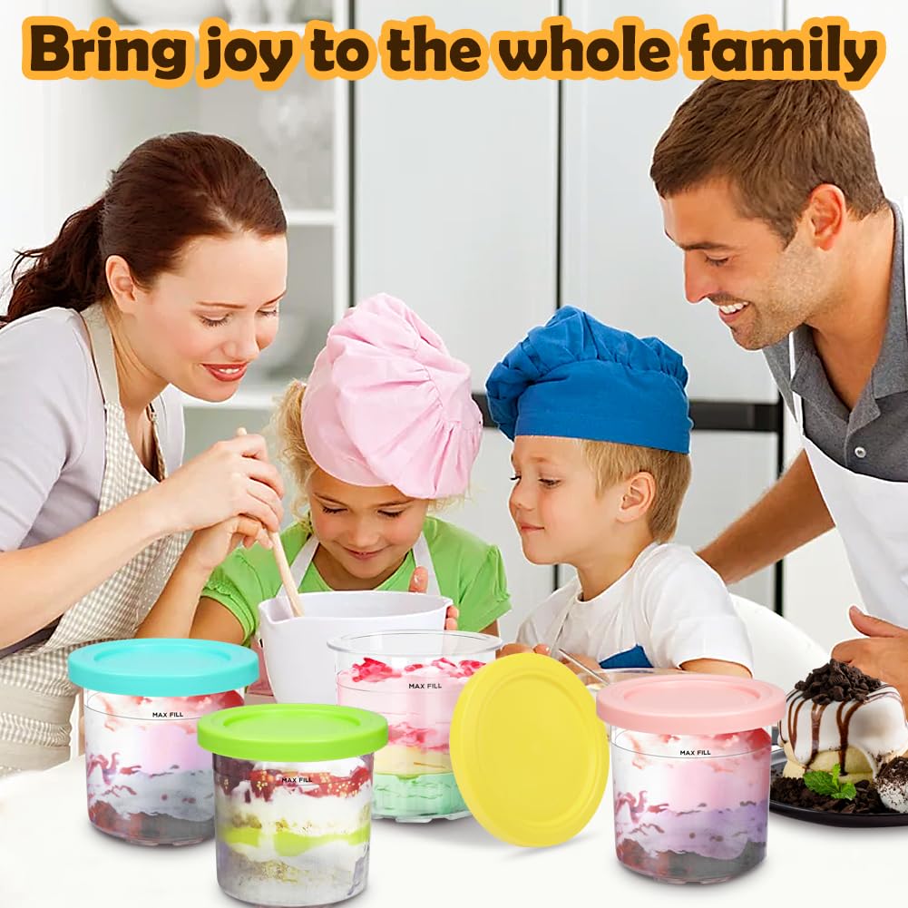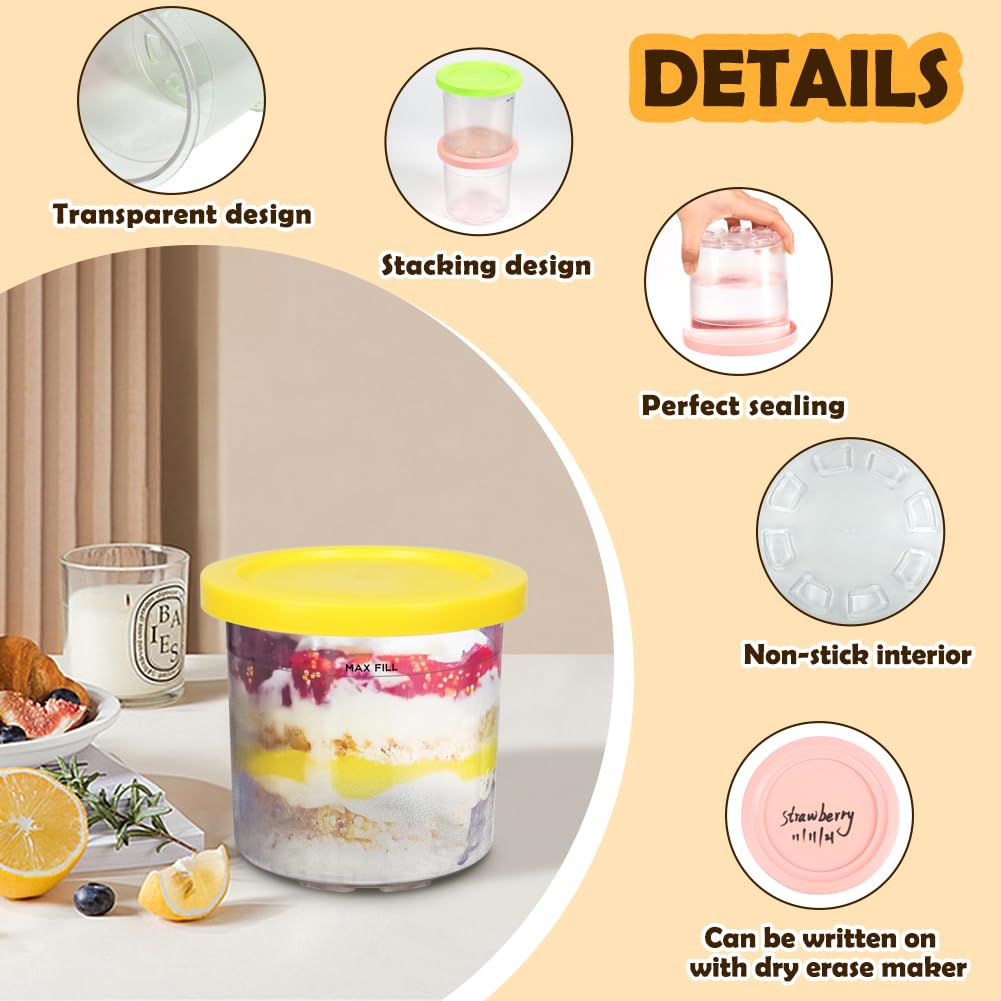 Boah, endlich mehr Eisbehälter für deine Ninja Creami! Dieses 4er-Set ist der absolute Game-Changer für alle, die gerne verschiedene Eissorten parallel machen wollen.\n\nJeder Behälter hat nen bunten Deckel in gelb, rosa, blau oder grün - so behältst du immer den Überblick, was wo drin ist. Super praktisch, wenn du für die Familie oder Freunde mehrere Sorten vorbereitest!\n\nDie Behälter sind aus BPA-freiem Material und spülmaschinenfest. Einfach reinigen und wieder verwenden. Und die Deckel kannst du sogar beschriften - perfekt für kreative Eis-Kreationen!\n\nWichtig: Nicht über die Fülllinie gehen und die Behälter nur gerade in die Maschine stellen. Aber das weißt du ja von deiner originalen Creami.\n\nMit diesen zusätzlichen Behältern musst du nie mehr warten, bis der eine Behälter sauber ist. Einfach durchtauschen und weiter geht's mit dem Eis-Spaß! Übrigens passen sie perfekt für NC300EU und NC300EUCP Modelle.\n\nEis-Liebhaber aufgepasst: Damit wird deine Creami noch vielseitiger! Jetzt kannst du wirklich durchstarten mit deinen Eis-Experimenten.