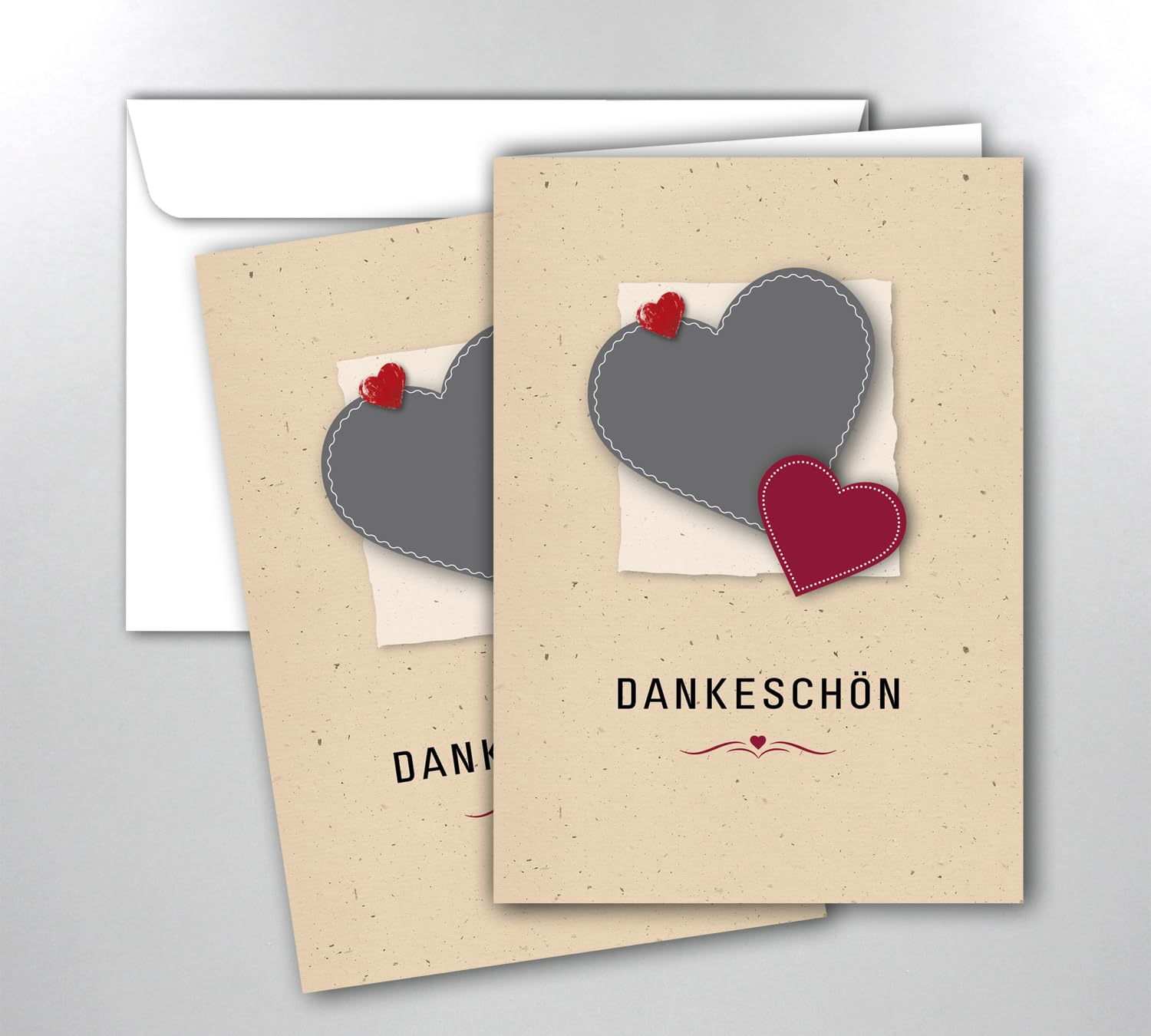 Sag Danke auf die schönste Art! Dieses Set mit 5 Dankeskarten in A6 bringt deine Wertschätzung perfekt zum Ausdruck. Mit natürlichen Kraftpapier-Umschlägen und passenden Aufklebern.\\n\\nDie Karten sind innen blanko - du hast viel Platz für deine persönlichen Worte. Ob für Geburtstagsgeschenke, Hilfe im Alltag oder einfach nur so - zeig, dass du dankbar bist!\\n\\n• 5 Dankeskarten + 5 Umschläge + Dankeschön-Aufkleber\\n• Format: A6 (10,5 x 14,8 cm)\\n• Hochwertiges 350g/m² Papier - verschmiert nicht\\n• Mattes Finish - edle Haptik\\n• Einfaches Kalligrafie-Design - zeitlos schön\\n\\nDas Papier ist extra dick und fühlt sich wertig an. Beim Schreiben mit Füller oder Kugelschreiber gibt's keine unschönen Verschmierungen. Die Aufkleber zum Versiegeln sind das i-Tüpfelchen.\\n\\nSuper für private Dankeschöns, aber auch für geschäftliche Anlässe geeignet. Mach jemandem eine Freude und schick eine handgeschriebene Karte - das kommt heute besonders gut an!