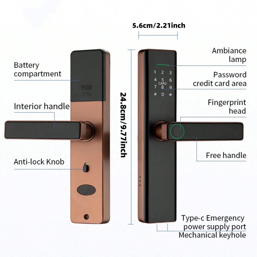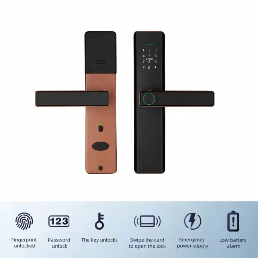 Willkommen im 21. Jahrhundert! Dieses HOARLICN Smart Lock macht Schlüssel überflüssig. Fünf Entsperrmethoden stehen dir zur Auswahl: Fingerabdruck, Passwort, Magnetkarte, physischer Schlüssel oder temporärer Applet-Code via WeChat. Bis zu 50 Fingerabdrücke, 100 Passwörter und 50 Karten können gespeichert werden - perfekt für Familien, Vermieter oder Büros. Die robuste Aluminiumlegierung in Roségold sieht nicht nur edel aus, sondern hält auch was aus. Das intelligente Warnsystem warnt bei Manipulationsversuchen oder niedrigem Batteriestand. Und falls die Batterie mal leer sein sollte: Einfach per Powerbank über die Notfall-Ladeschnittstelle aufladen! Die Montage ist einfach und für Türen bis 5 cm Dicke geeignet. IP65 Schutz macht es wetterfest - ideal auch für Außentüren. Sag goodbye zu verlorenen Schlüsseln und hello zu smartem Komfort!