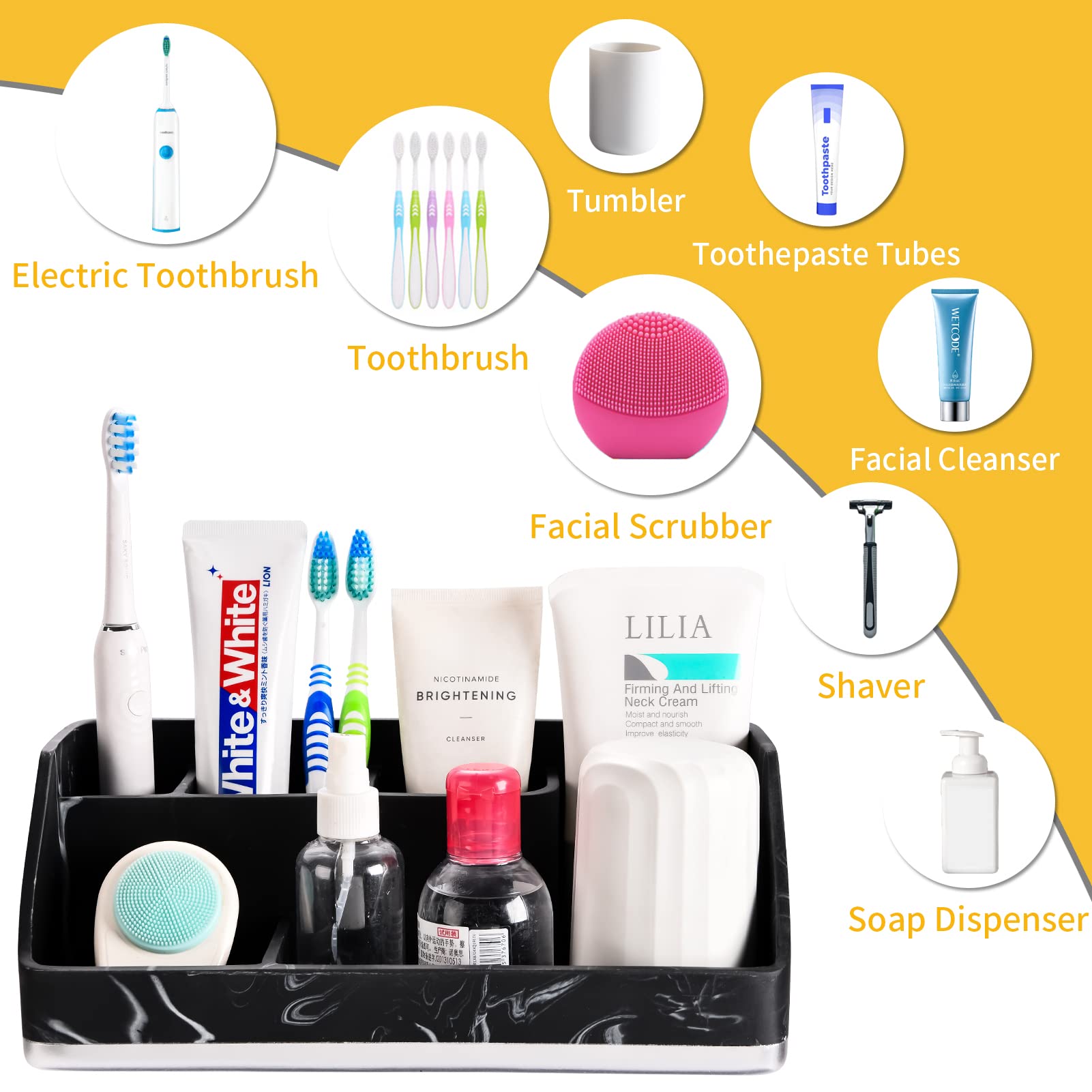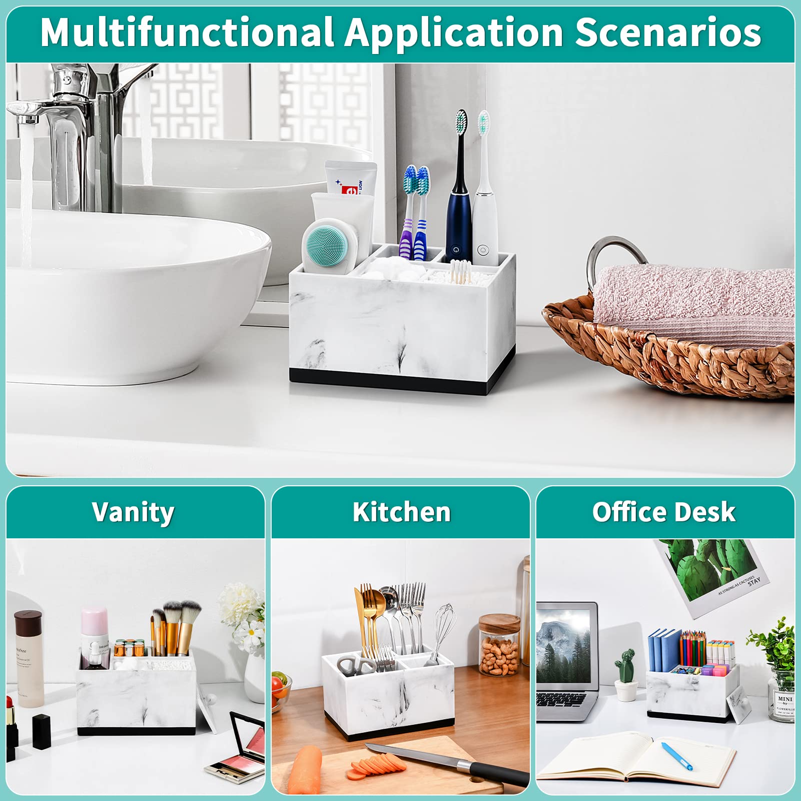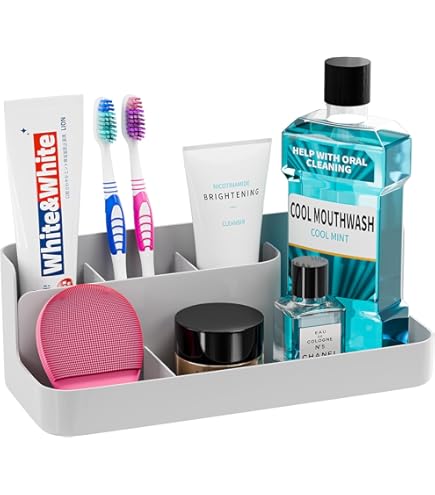 Endlich Ordnung im Badezimmer! Dieser VITVITI Zahnbürstenhalter mit 5 Fächern bringt System in dein Bad. Aus hochwertigem ABS-Kunststoff ist er wasserdicht und super langlebig - da bricht nichts so schnell. Das clevere gestaffelte Design bietet Platz für alles: Zahnbürsten, Zahnpasta, Rasierer, Kämme und sogar Make-up-Tools. Mit dem praktischen Abflussloch läuft überschüssiges Wasser einfach ab. Einfach auf die Arbeitsplatte stellen und schon sieht alles viel aufgeräumter aus! Übrigens: Der Halter ist nicht nur fürs Badezimmer perfekt, sondern auch für die Küche oder den Schreibtisch. Reinigen geht ganz easy - einfach mit einem feuchten Tuch abwischen oder kurz abspülen. Sag goodbye zum Chaos!