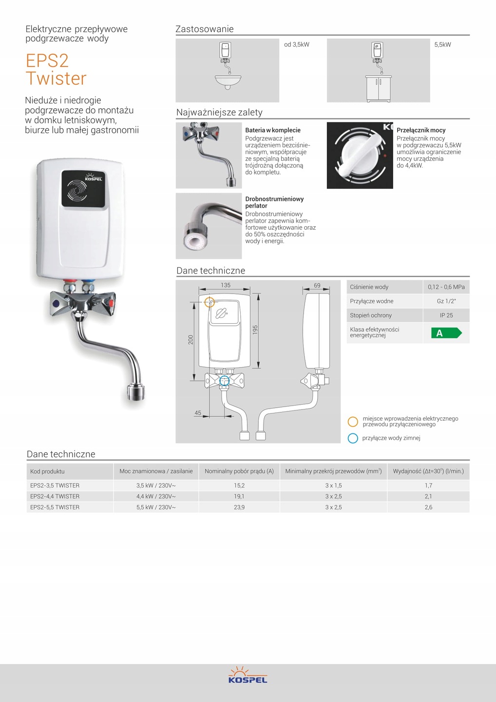 Sofort warmes Wasser wo du es brauchst! Dieser kompakte Kospel Durchlauferhitzer mit 3,5 kW Leistung ist perfekt für Waschbecken in Küche, Gäste-WC oder Werkstatt. Maße: nur 195x135x70mm - passt auch in enge Räume. Liefert bis zu 1,7 Liter warmes Wasser pro Minute bei 30°C. Einfache Installation mit 3x1,5mm² Kabel, Absicherung mit 15,2A. Schutzart IP25 für erhöhte Sicherheit. Ohne Stecker - muss vom Elektriker angeschlossen werden. Mit Armatur im Lieferumfang. Nie wieder kalte Hände waschen! Ideal für Mietwohnungen oder wo keine zentrale Warmwasserversorgung vorhanden ist.