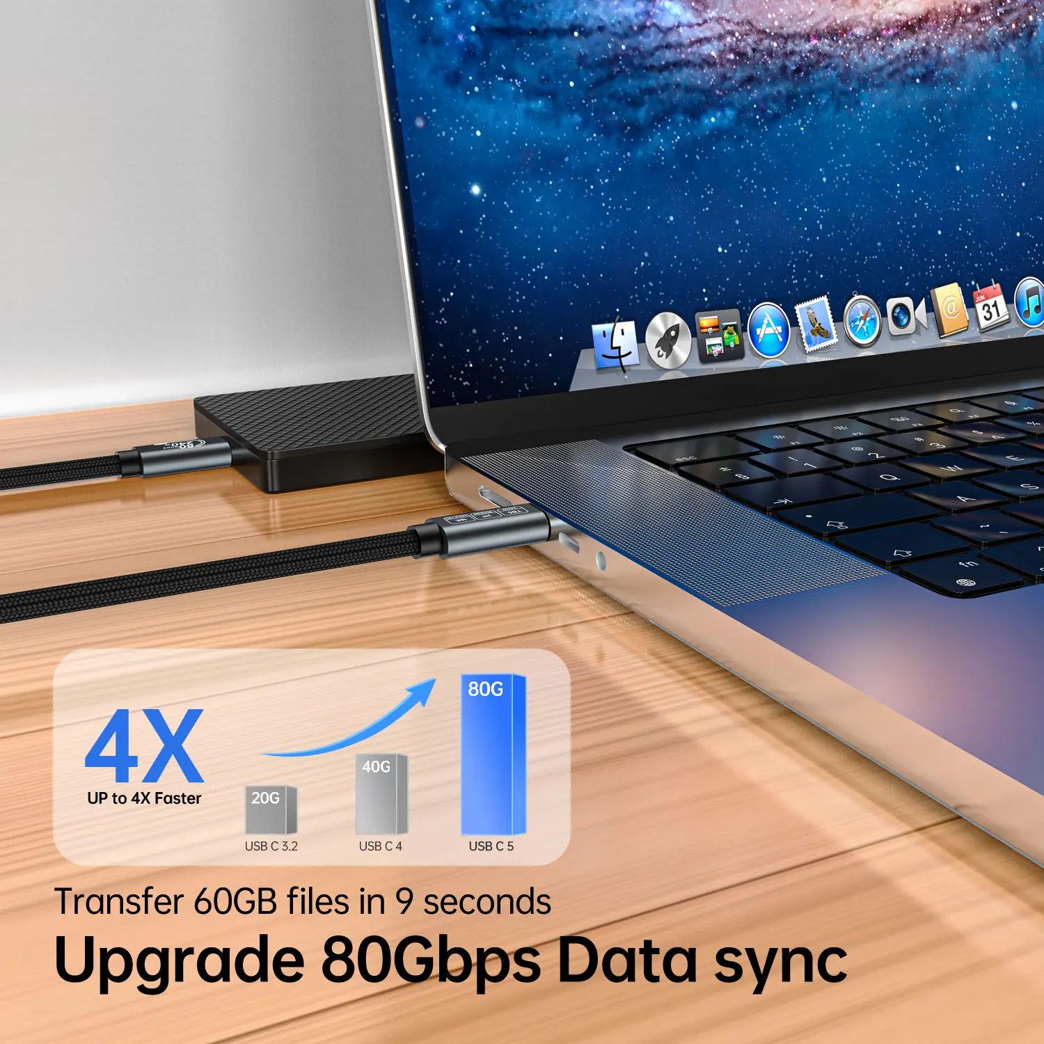 Wow, dieses Kabel ist echt der Hammer! Mit Thunderbolt 5 unterstützt es unglaubliche 80 Gbit/s - da sind selbst große Dateien in Sekunden übertragen. Und im Boost-Mode sogar 120 Gbit/s für zwei 8K-Monitore gleichzeitig! Aber das ist noch nicht alles: Bis zu 240W Ladeleistung bringen dein iPhone 16/15, MacBook Pro oder andere USB-C Geräte blitzschnell auf. Das geflochtene Design ist super robust und hält auch bei viel Bewegung stand. Kompatibel mit Thunderbolt 4/3, USB4 und allen USB-C Geräten. Perfekt für Profis, die mit großen Dateien arbeiten, Gamer die flüssiges Streaming wollen, oder einfach alle, die kein langes Laden mehr ertragen können. Ein Kabel für alles - Daten, Video und Laden in einem!